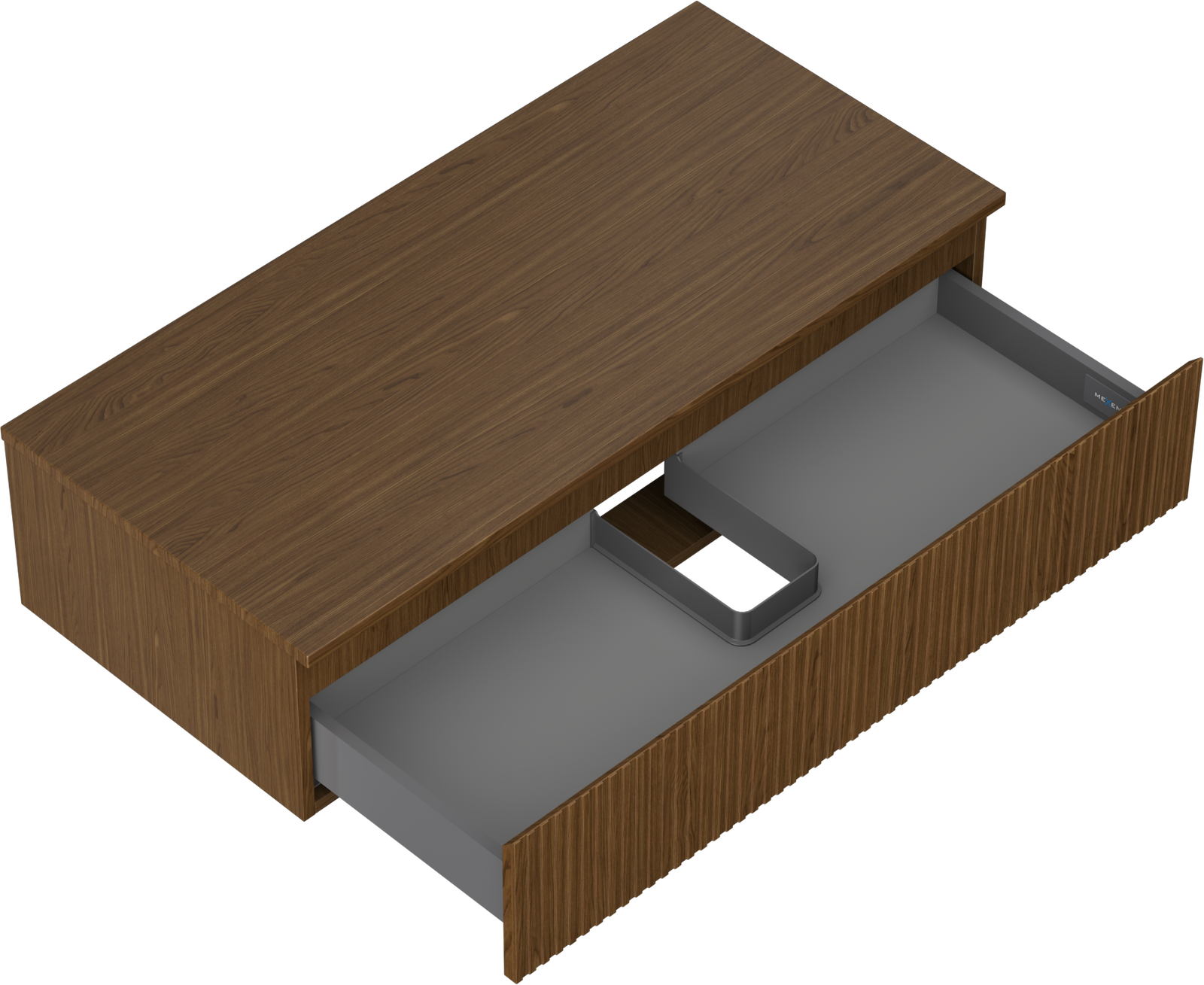 The cutout in the drawer is designed in such a way as to accommodate the siphon, which is essential in sink installations. This allows the furniture to be fully functional without having to give up drawer space for the installation.