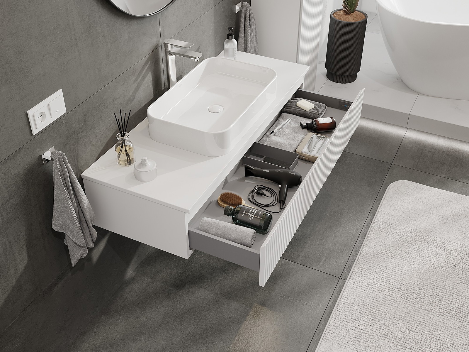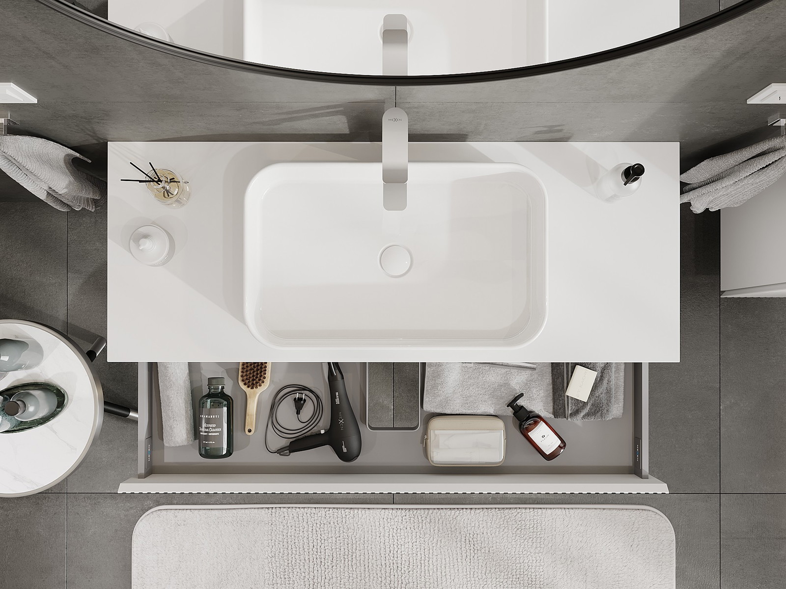 Our modular bathroom furniture can be combined in various colour configurations, allowing for complete personalisation. You can choose both the appearance and functions of individual elements, enabling you to adapt the furniture to your own stylistic and functional preferences.