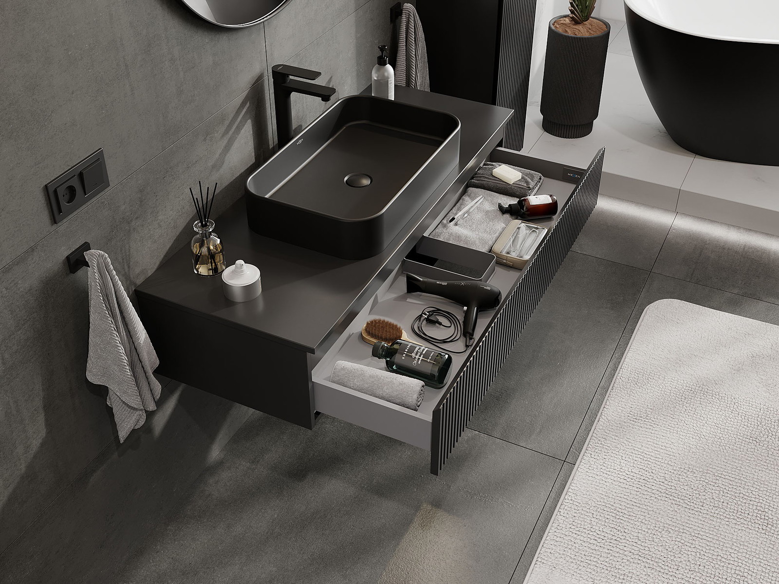Our modular bathroom furniture can be combined in various colour configurations, allowing for complete personalisation. You can choose both the appearance and functions of individual elements, enabling you to adapt the furniture to your own stylistic and functional preferences.