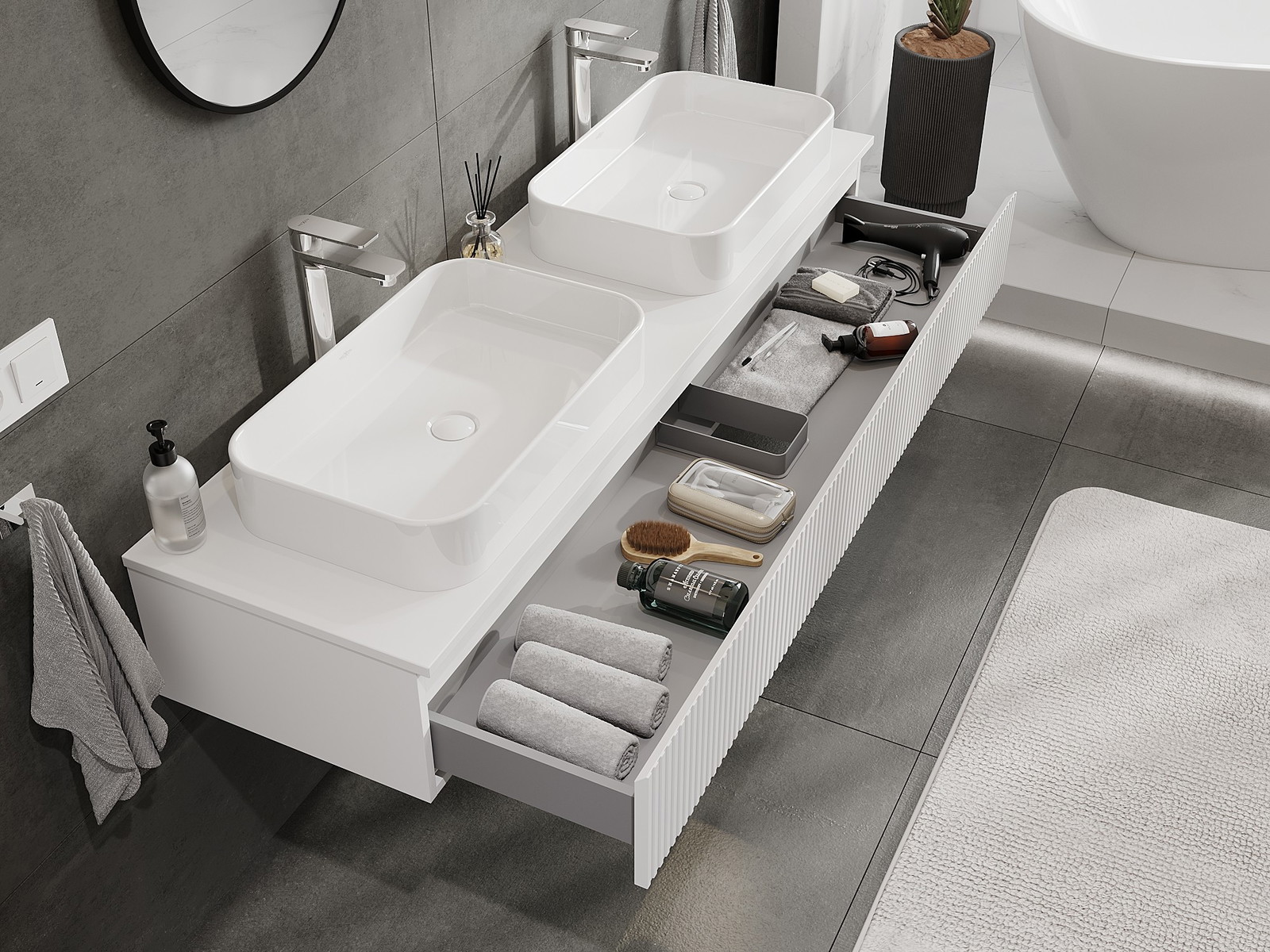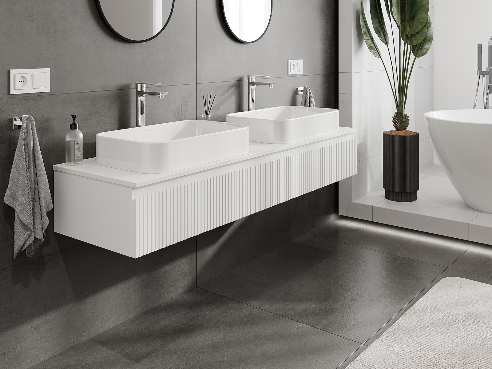 Mexen Rivel bathroom cabinet for under sink 160 cm with countertop, 1 drawer, grooved, matte white - 91A20-16023-1-BFC01
