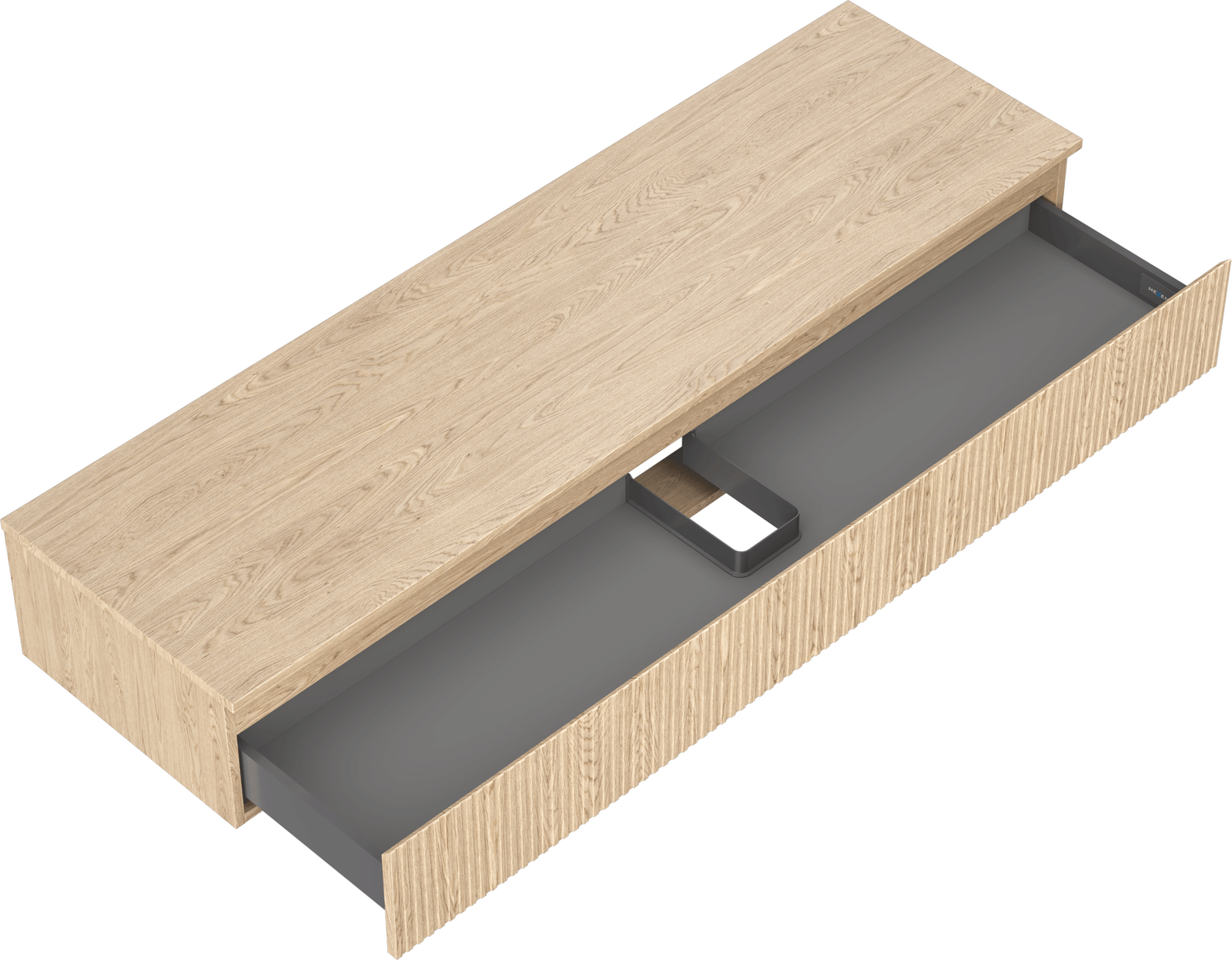 The cutout in the drawer is designed in such a way as to accommodate the siphon, which is essential in sink installations. This allows the furniture to be fully functional without having to give up drawer space for the installation.