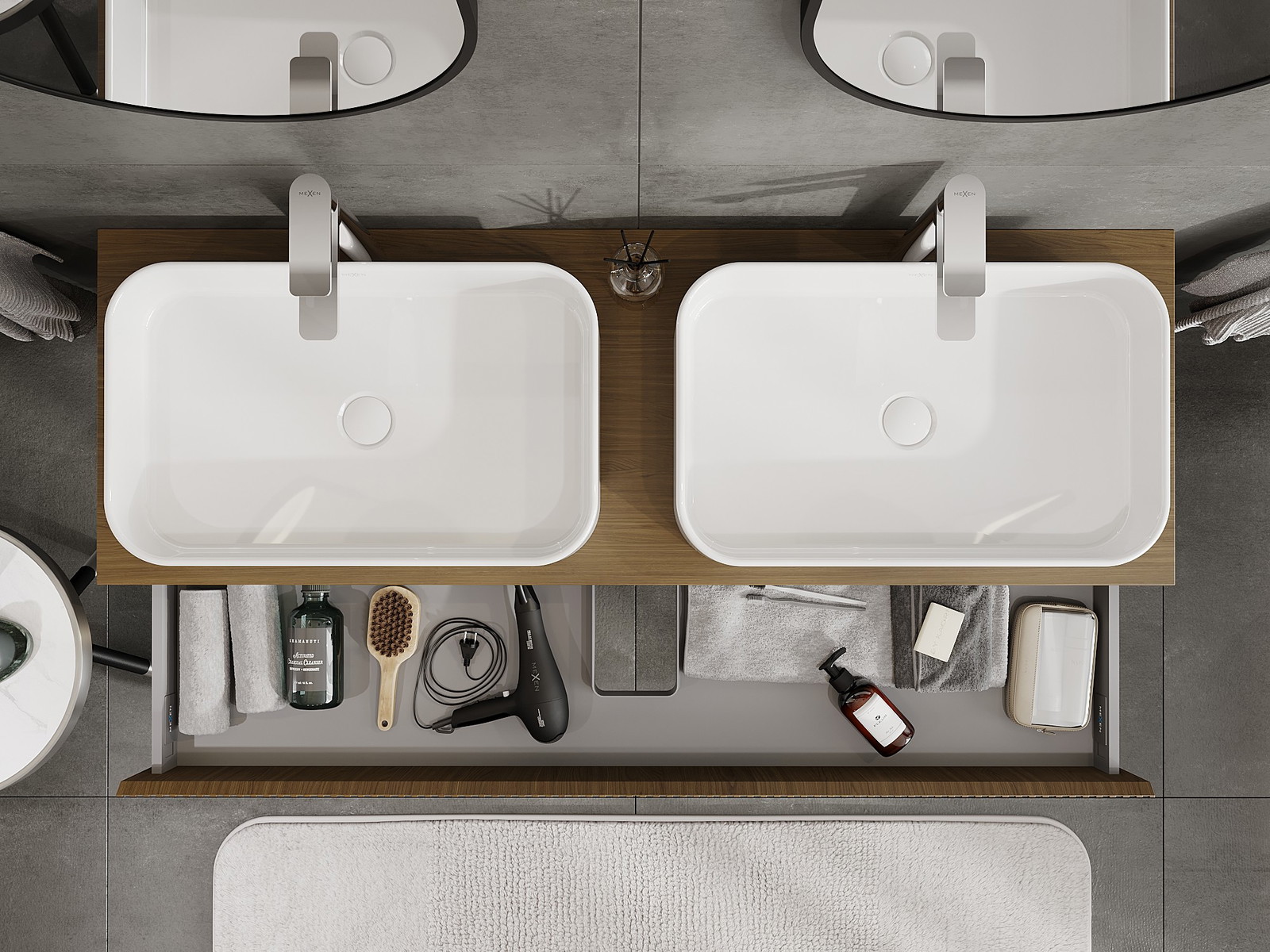 Our modular bathroom furniture can be combined in various colour configurations, allowing for complete personalisation. You can choose both the appearance and functions of individual elements, enabling you to adapt the furniture to your own stylistic and functional preferences.
