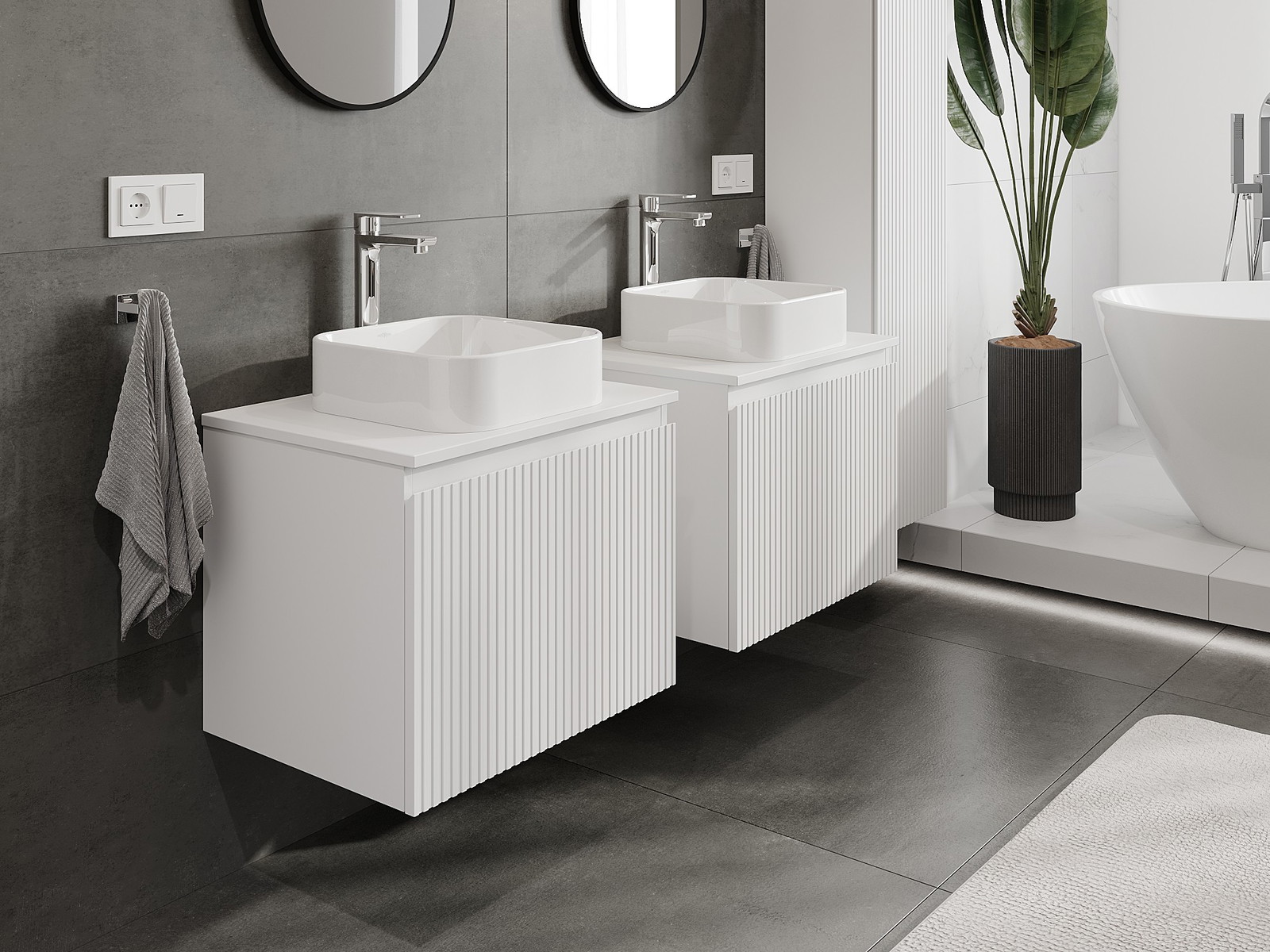 Mexen Rivel bathroom cabinet for washbasin 60 cm with countertop, 1 drawer, grooved, white matte - 91A20-06047-1-BFC01