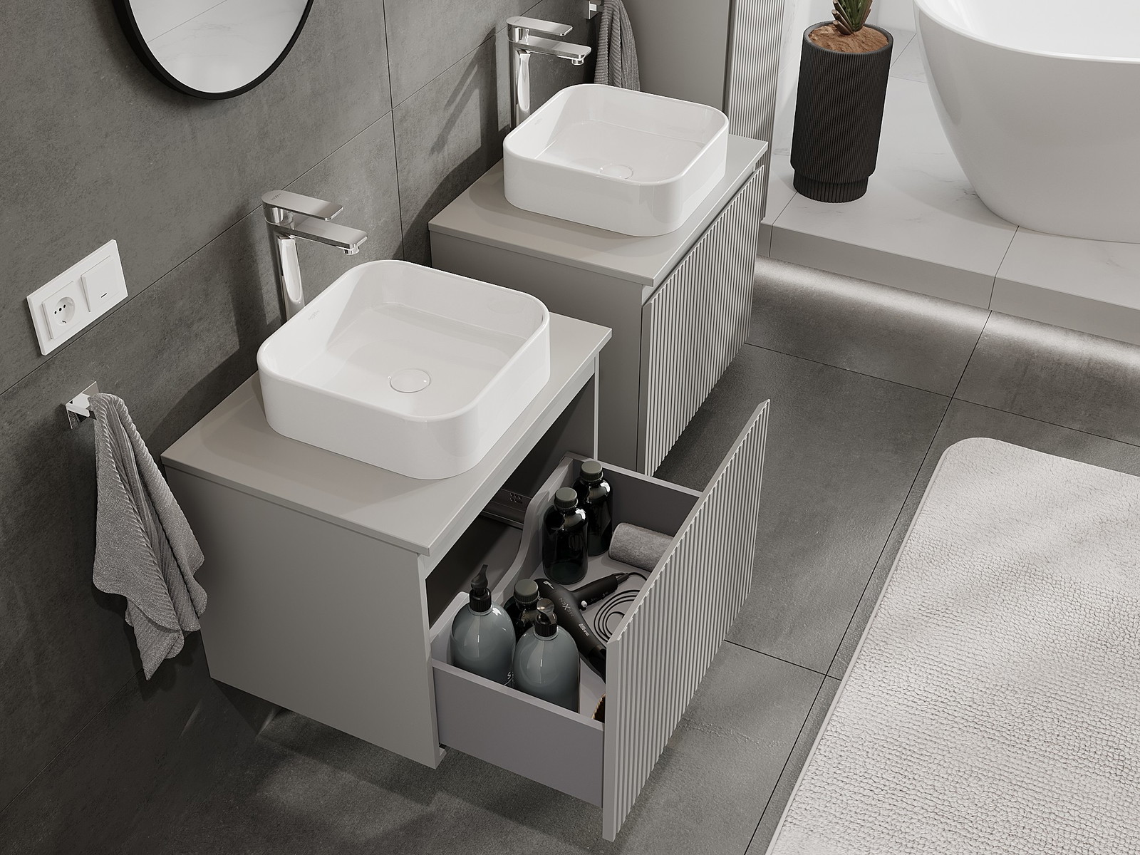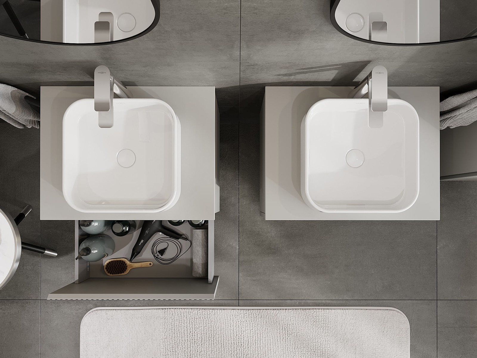 Our modular bathroom furniture can be combined in various colour configurations, allowing for complete personalisation. You can choose both the appearance and functions of individual elements, enabling you to adapt the furniture to your own stylistic and functional preferences.