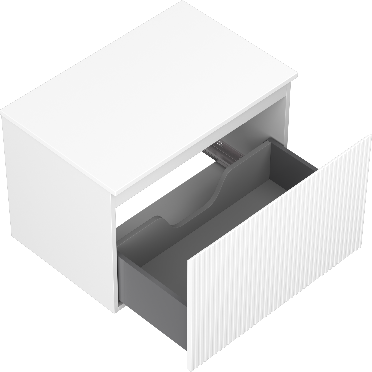 The cutout in the drawer is designed in such a way as to accommodate the siphon, which is essential in sink installations. This allows the furniture to be fully functional without having to give up drawer space for the installation.