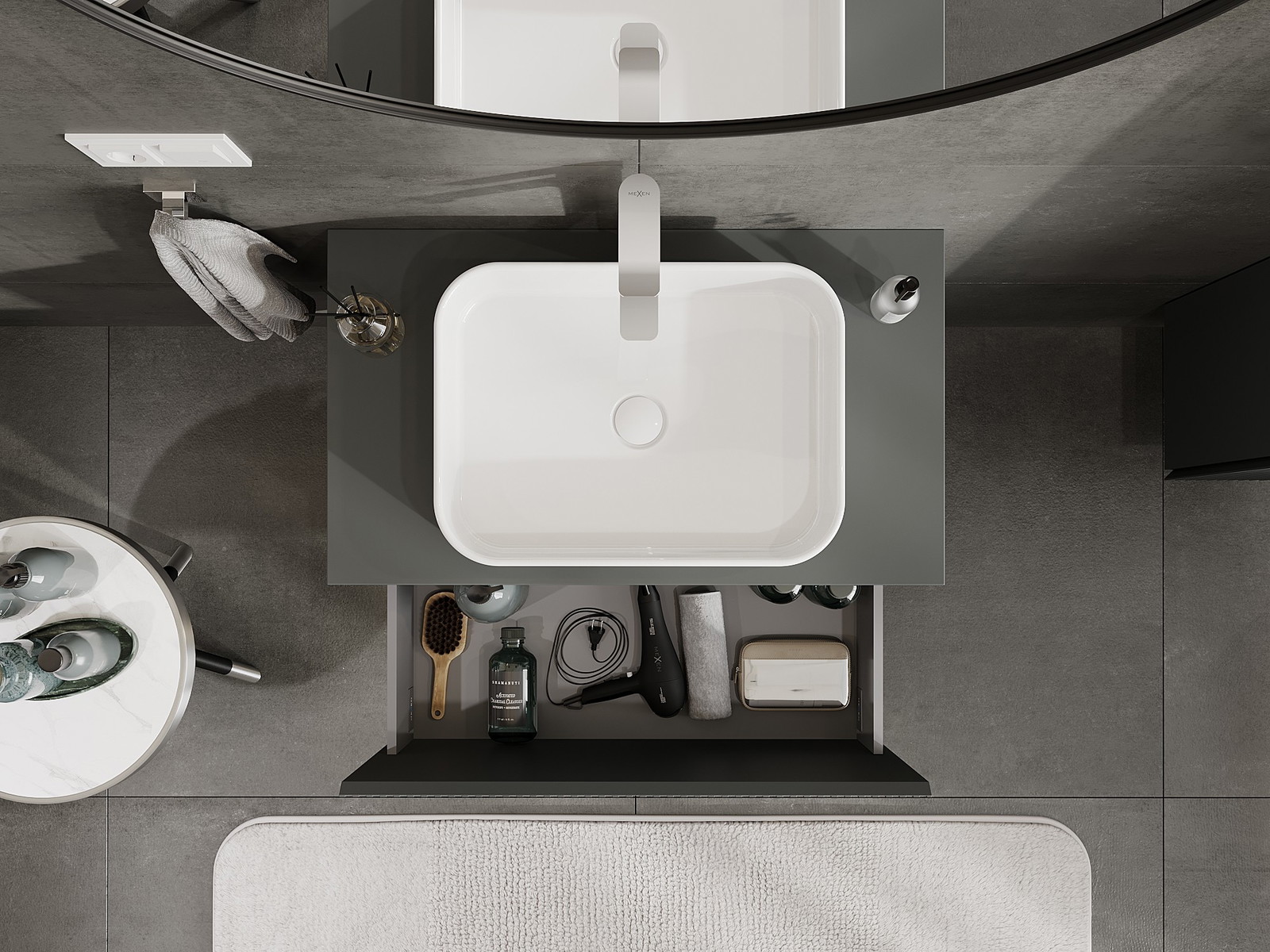 Our modular bathroom furniture can be combined in various colour configurations, allowing for complete personalisation. You can choose both the appearance and functions of individual elements, enabling you to adapt the furniture to your own stylistic and functional preferences.