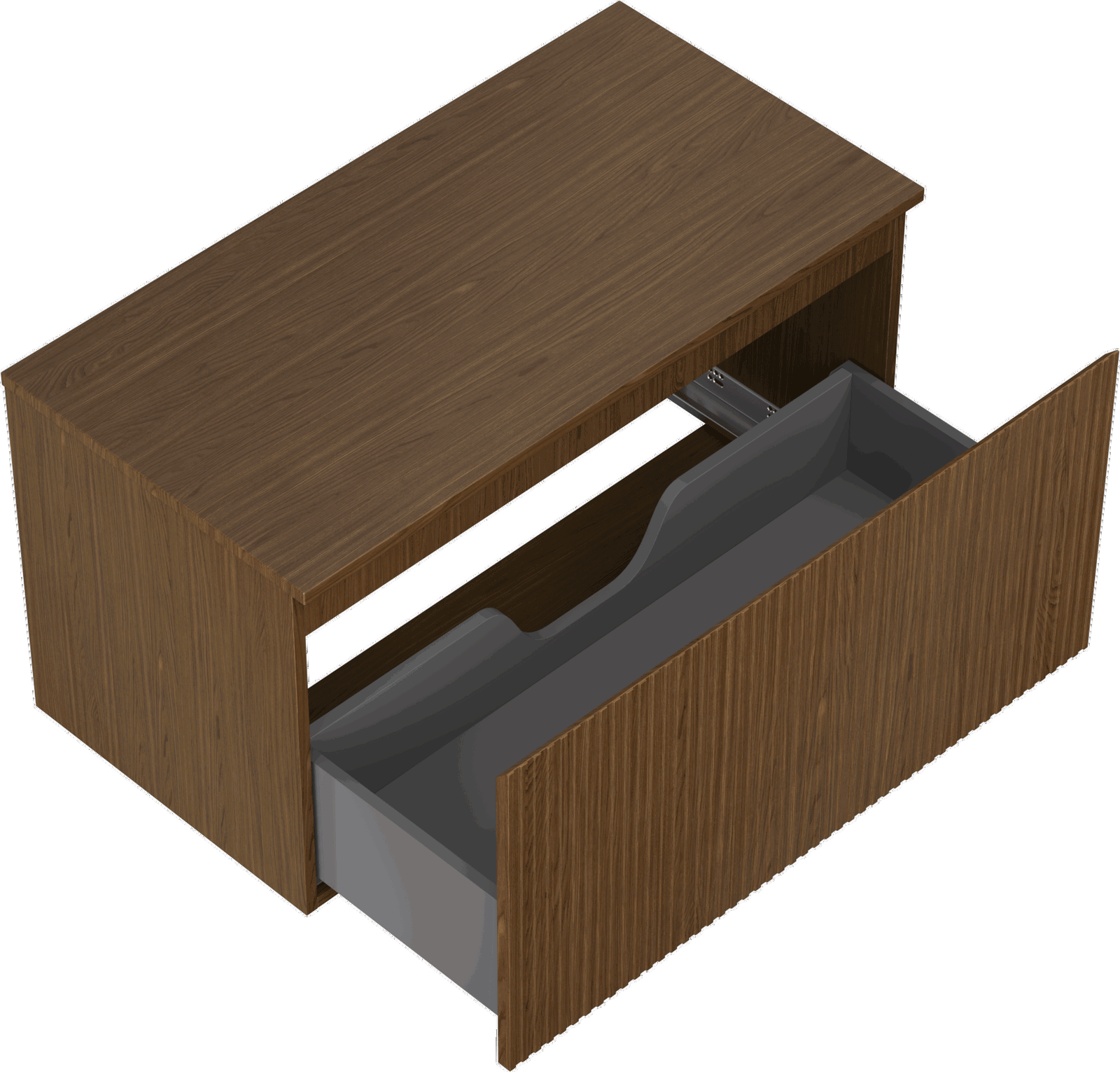 The cutout in the drawer is designed in such a way as to accommodate the siphon, which is essential in sink installations. This allows the furniture to be fully functional without having to give up drawer space for the installation.