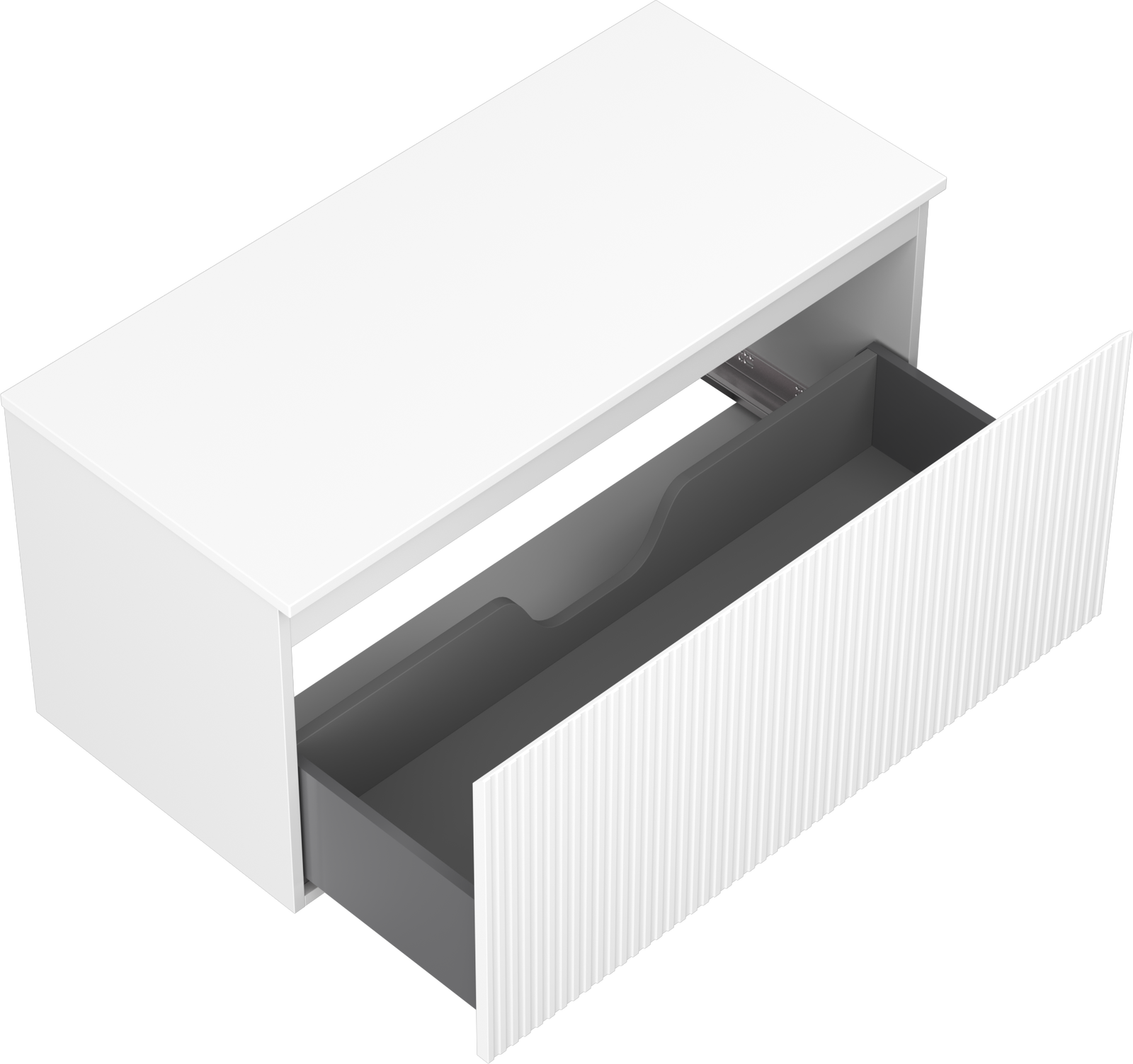 The cutout in the drawer is designed in such a way as to accommodate the siphon, which is essential in sink installations. This allows the furniture to be fully functional without having to give up drawer space for the installation.