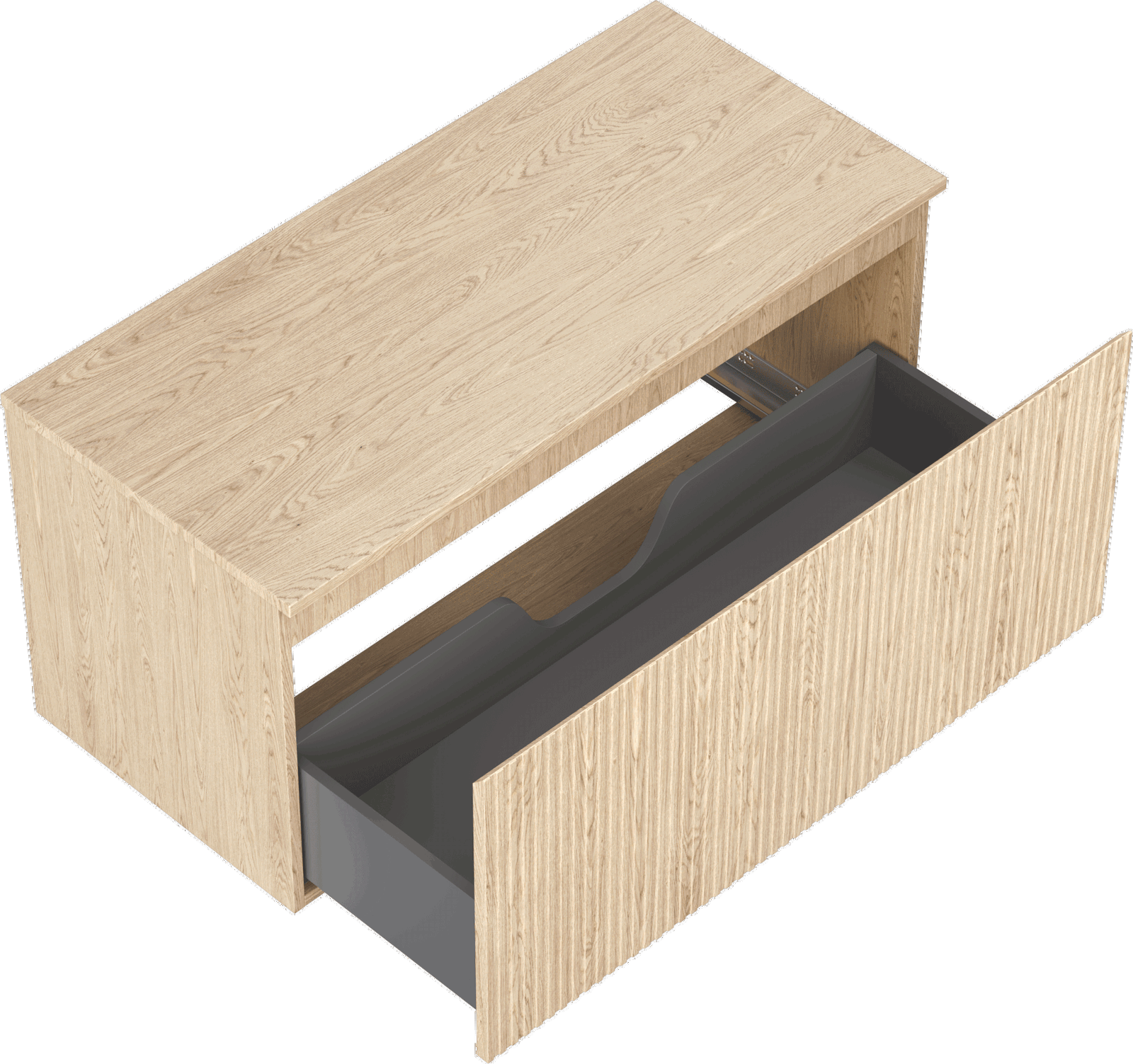 The cutout in the drawer is designed in such a way as to accommodate the siphon, which is essential in sink installations. This allows the furniture to be fully functional without having to give up drawer space for the installation.