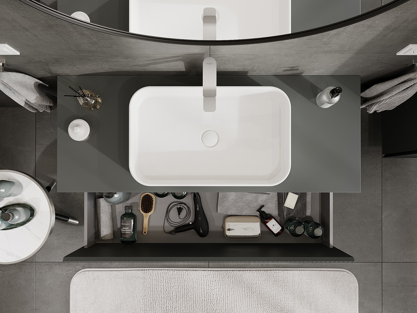 Our modular bathroom furniture can be combined in various colour configurations, allowing for complete personalisation. You can choose both the appearance and functions of individual elements, enabling you to adapt the furniture to your own stylistic and functional preferences.