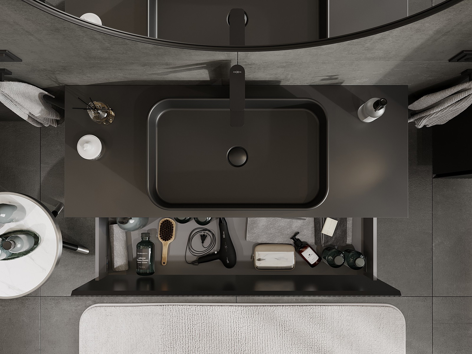 Our modular bathroom furniture can be combined in various colour configurations, allowing for complete personalisation. You can choose both the appearance and functions of individual elements, enabling you to adapt the furniture to your own stylistic and functional preferences.