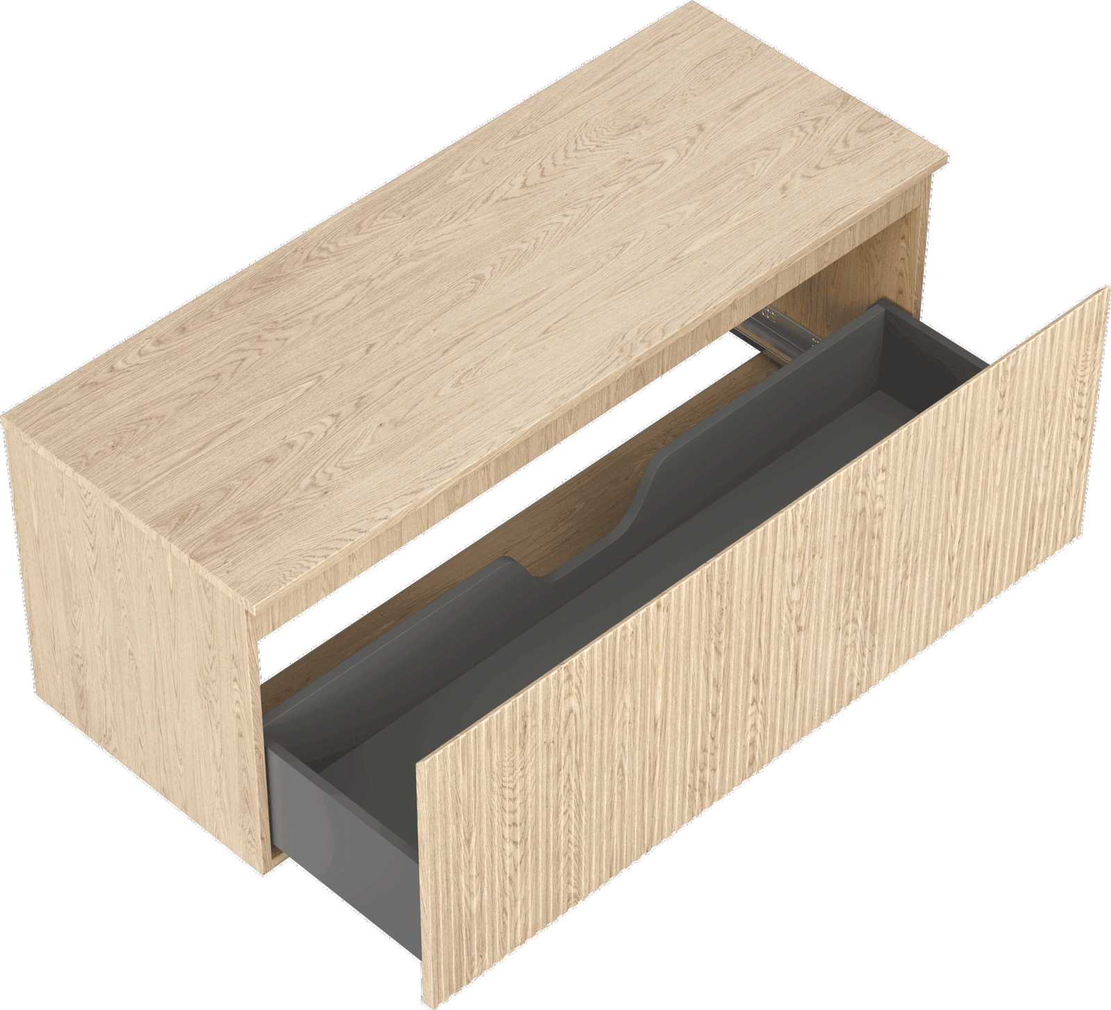 The cutout in the drawer is designed in such a way as to accommodate the siphon, which is essential in sink installations. This allows the furniture to be fully functional without having to give up drawer space for the installation.