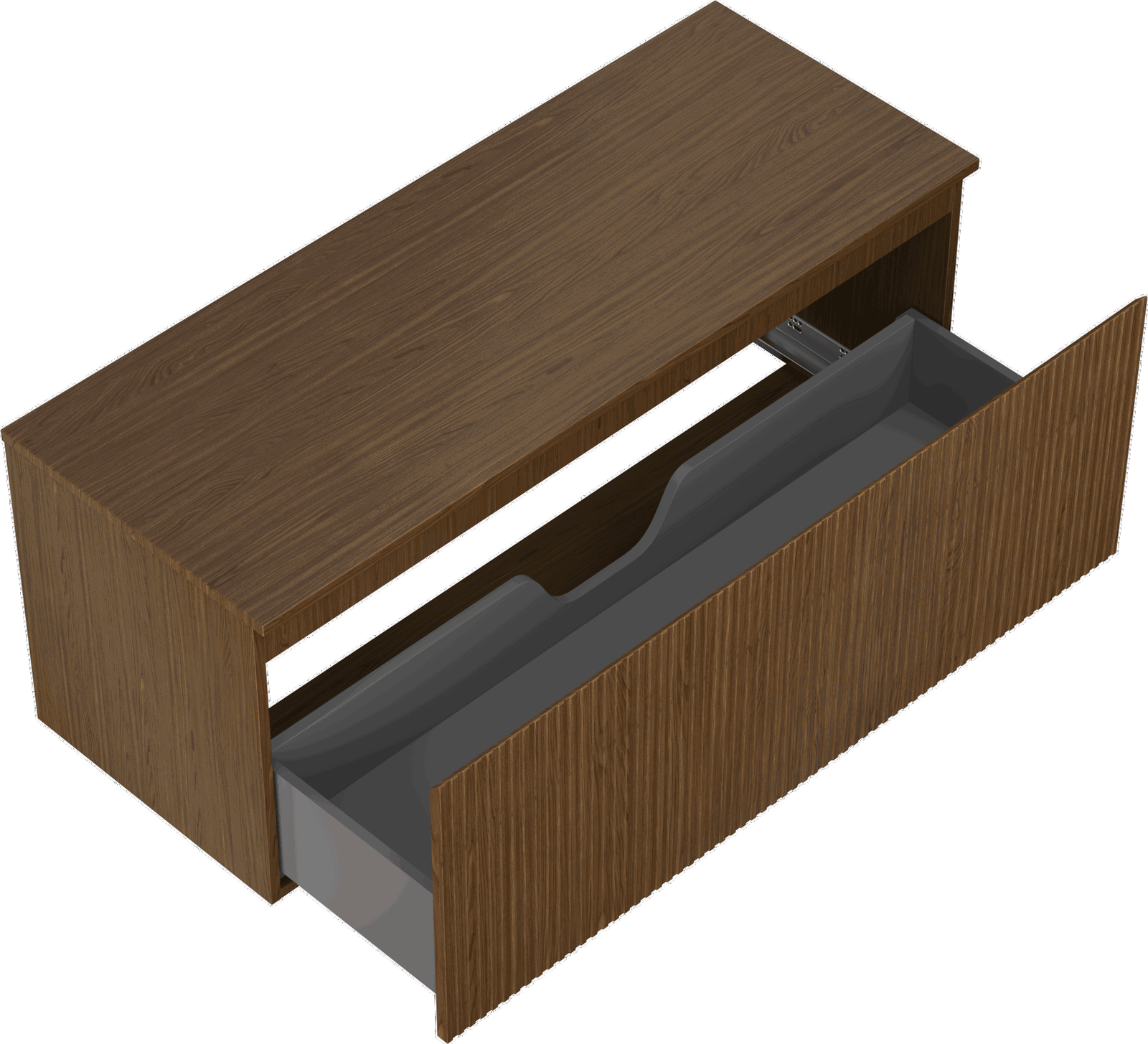 The cutout in the drawer is designed in such a way as to accommodate the siphon, which is essential in sink installations. This allows the furniture to be fully functional without having to give up drawer space for the installation.
