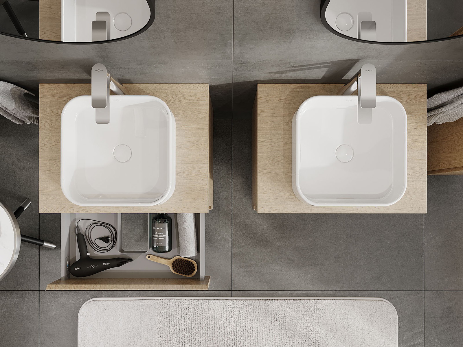 Our modular bathroom furniture can be combined in various colour configurations, allowing for complete personalisation. You can choose both the appearance and functions of individual elements, enabling you to adapt the furniture to your own stylistic and functional preferences.