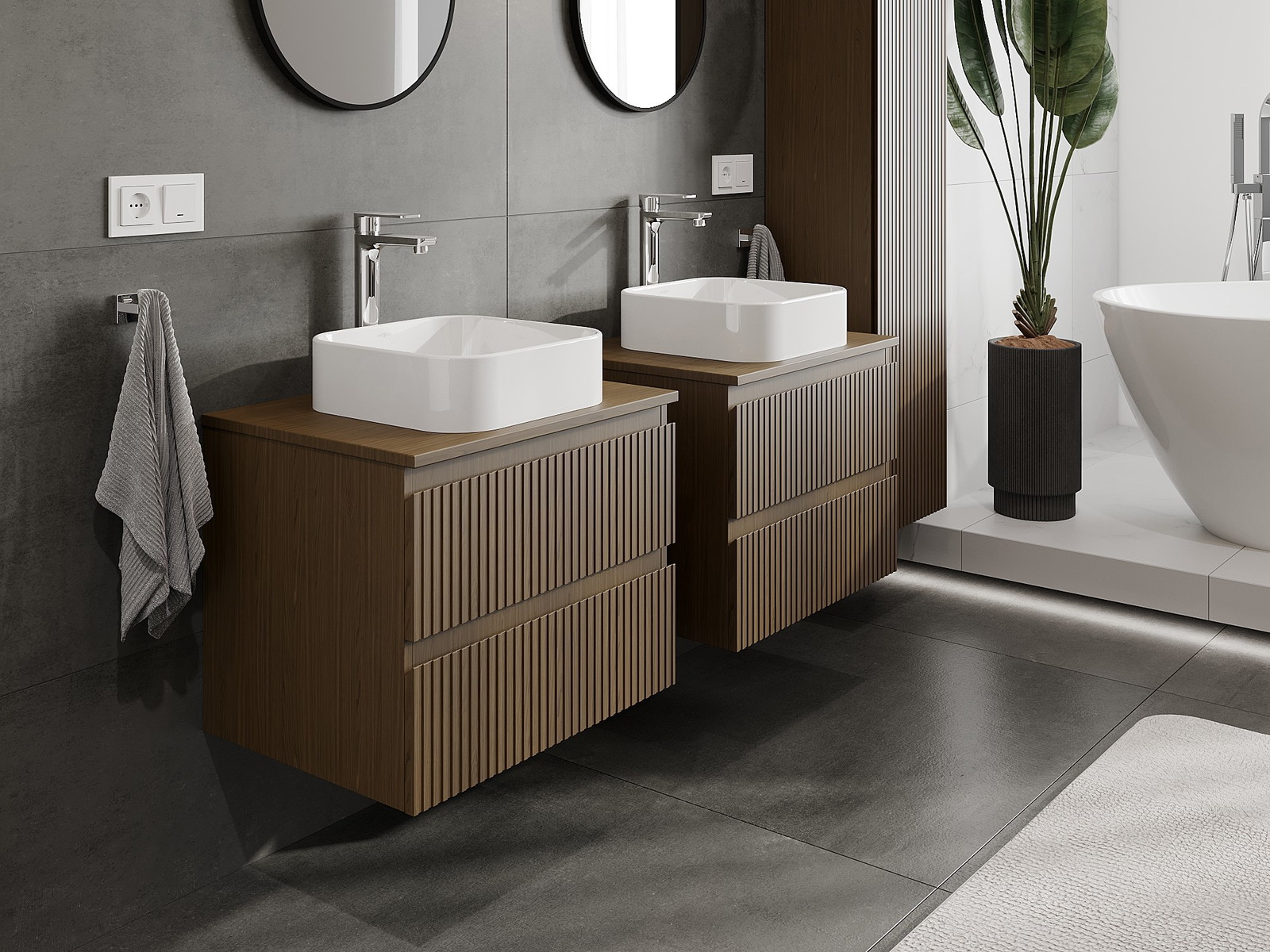 Our modular bathroom furniture can be combined in various colour configurations, allowing for complete personalisation. You can choose both the appearance and functions of individual elements, enabling you to adapt the furniture to your own stylistic and functional preferences.