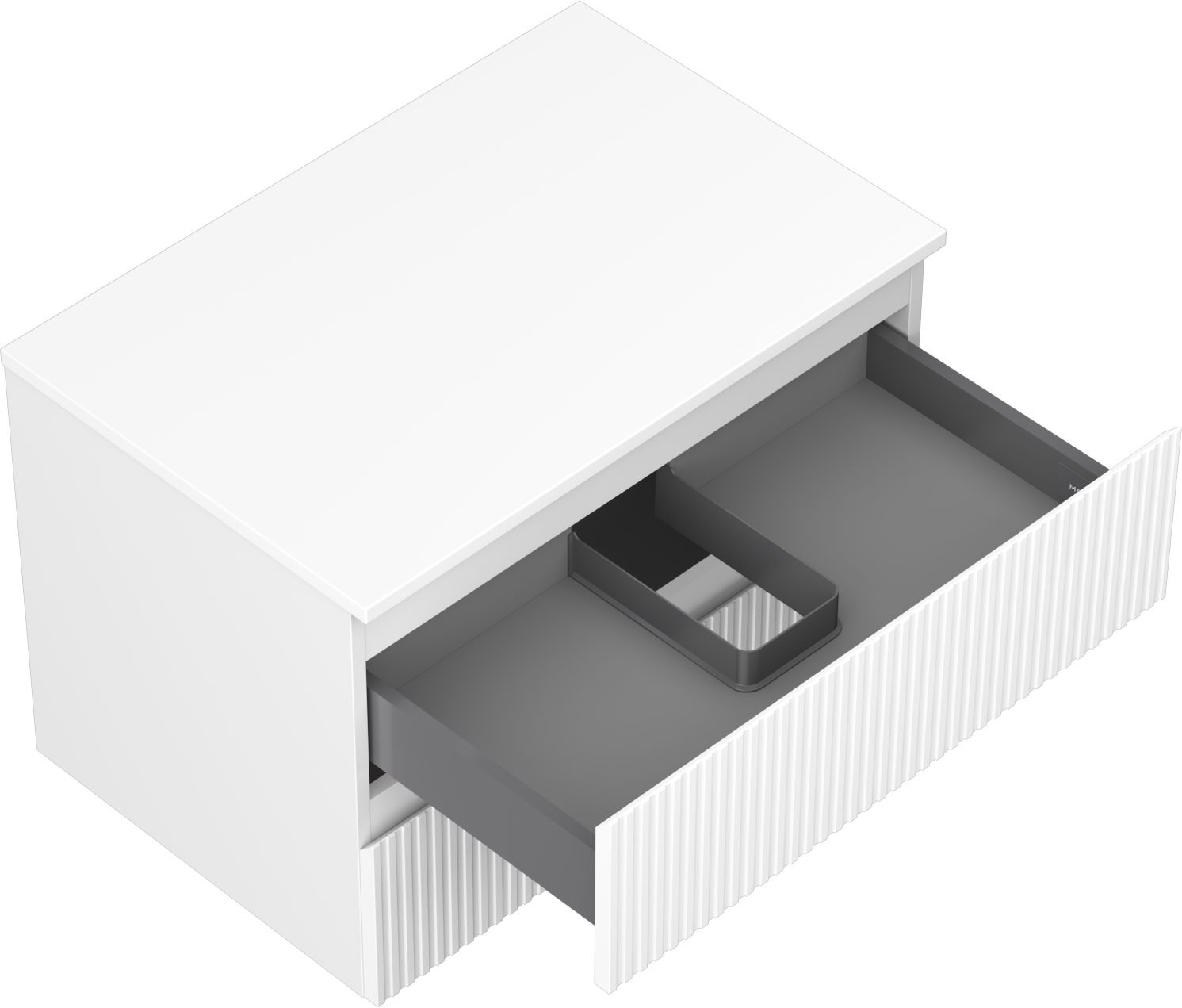 The cutout in the drawer is designed in such a way as to accommodate the siphon, which is essential in sink installations. This allows the furniture to be fully functional without having to give up drawer space for the installation.