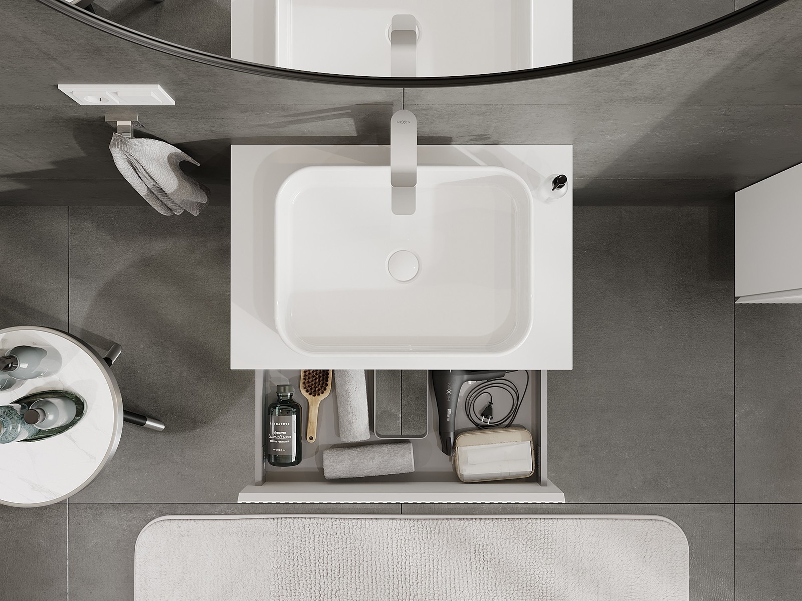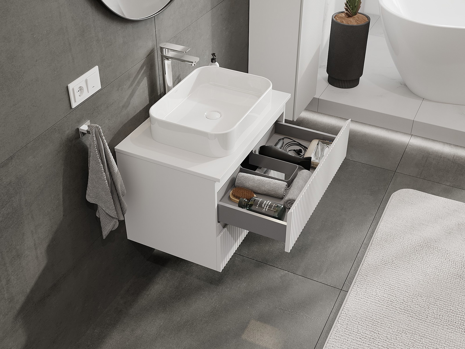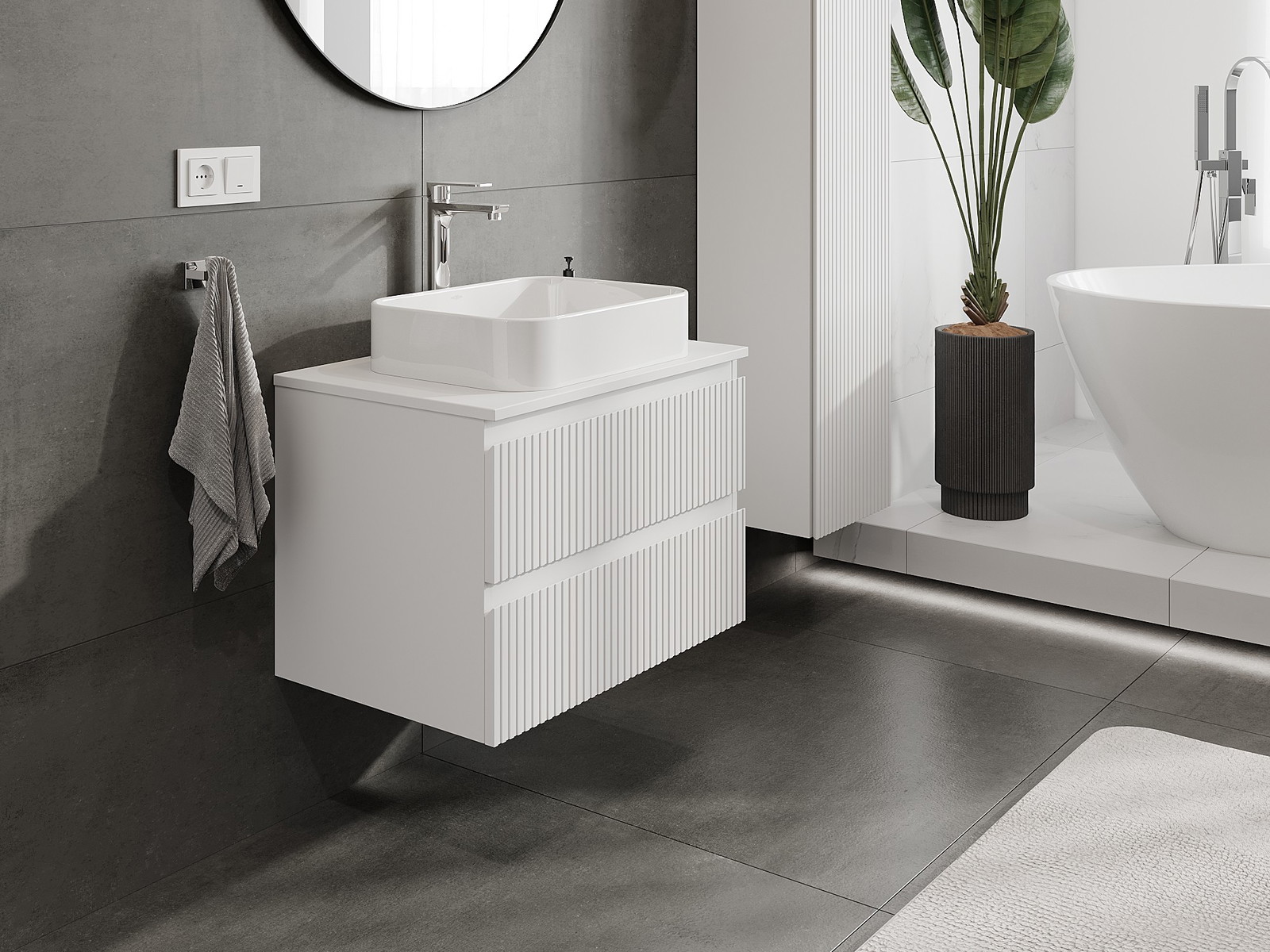Our modular bathroom furniture can be combined in various colour configurations, allowing for complete personalisation. You can choose both the appearance and functions of individual elements, enabling you to adapt the furniture to your own stylistic and functional preferences.