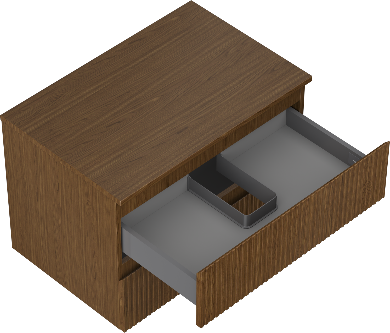 The cutout in the drawer is designed in such a way as to accommodate the siphon, which is essential in sink installations. This allows the furniture to be fully functional without having to give up drawer space for the installation.