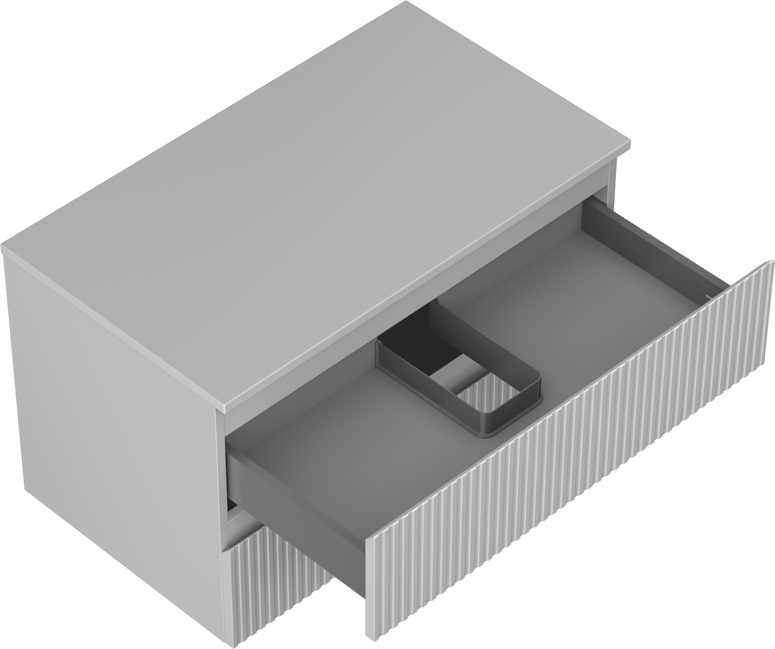 The cutout in the drawer is designed in such a way as to accommodate the siphon, which is essential in sink installations. This allows the furniture to be fully functional without having to give up drawer space for the installation.