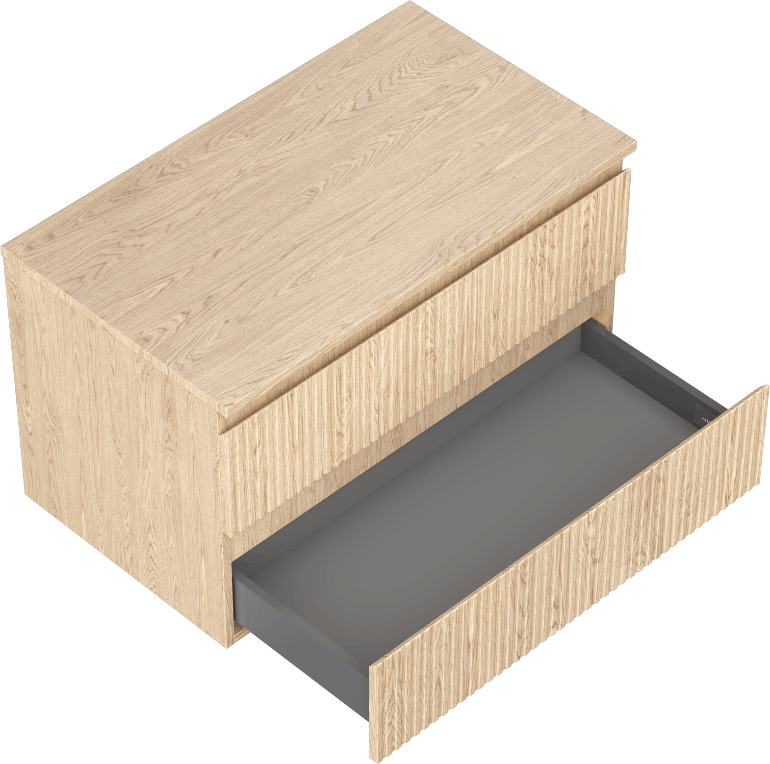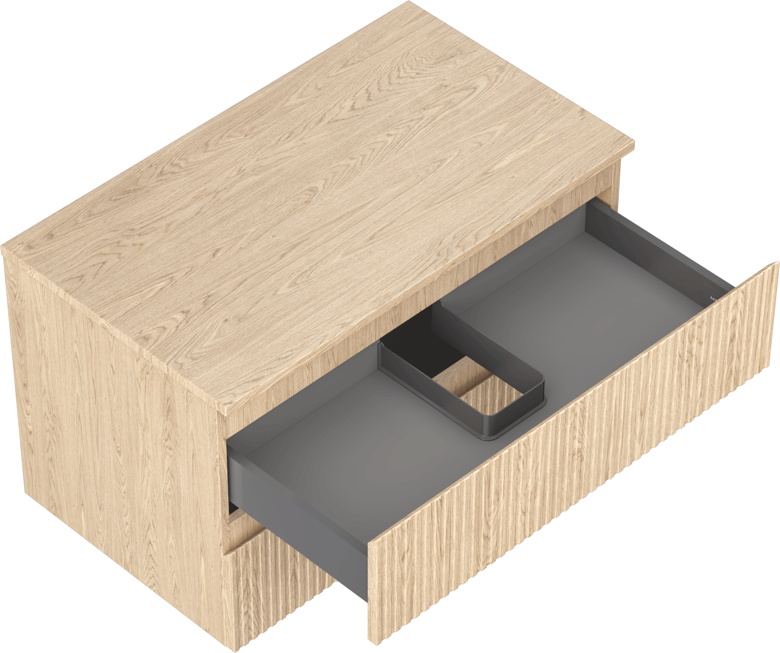 The cutout in the drawer is designed in such a way as to accommodate the siphon, which is essential in sink installations. This allows the furniture to be fully functional without having to give up drawer space for the installation.