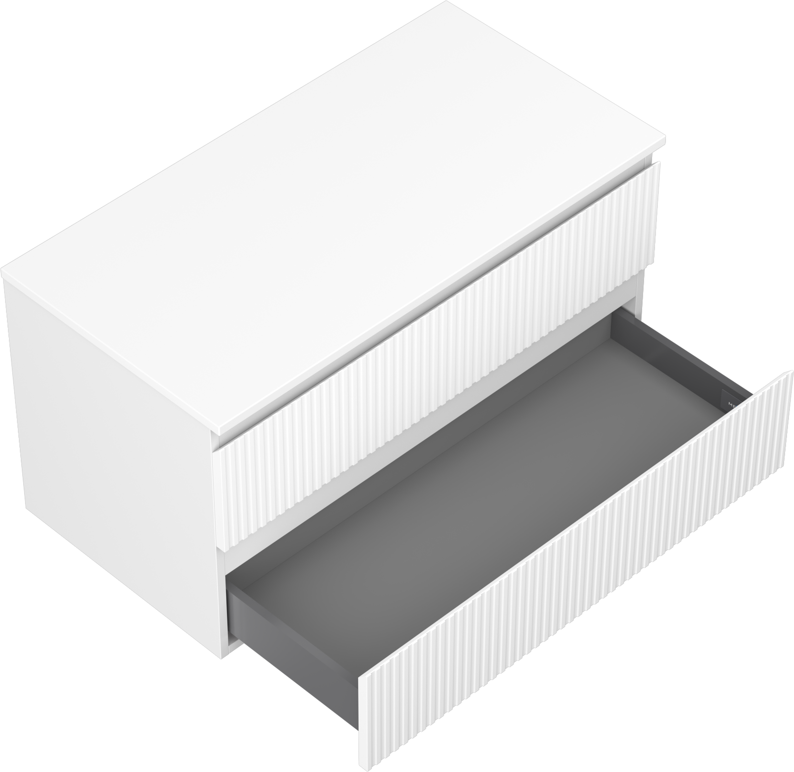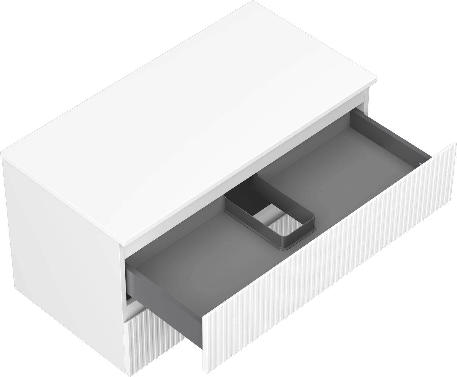The cutout in the drawer is designed in such a way as to accommodate the siphon, which is essential in sink installations. This allows the furniture to be fully functional without having to give up drawer space for the installation.