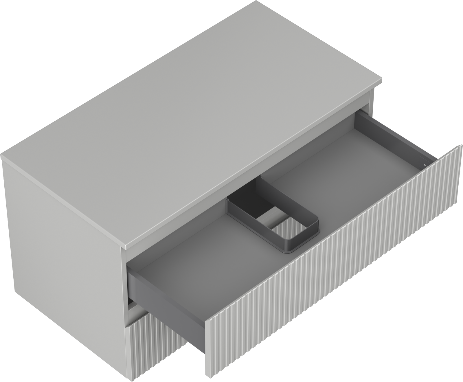 The cutout in the drawer is designed in such a way as to accommodate the siphon, which is essential in sink installations. This allows the furniture to be fully functional without having to give up drawer space for the installation.
