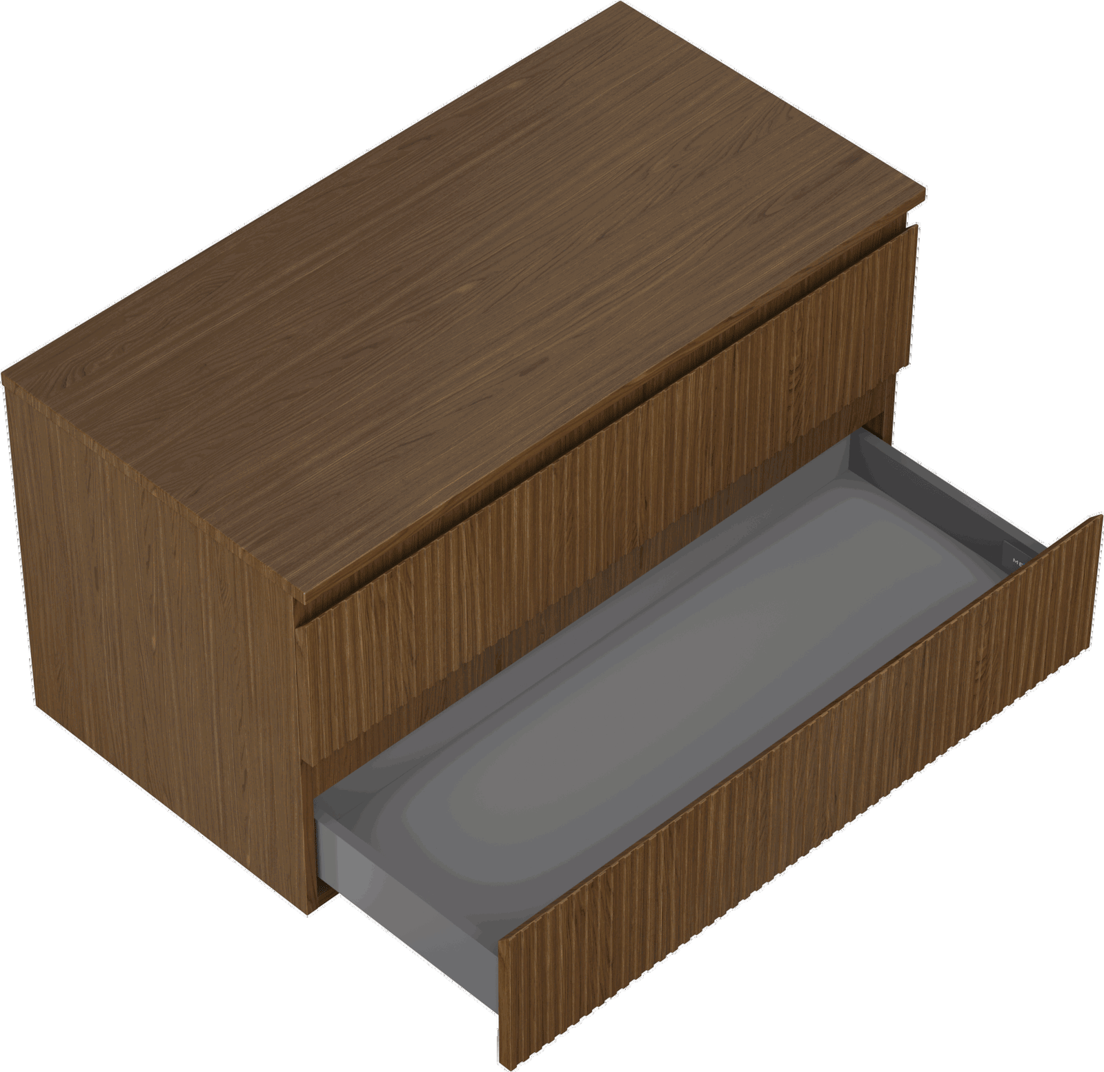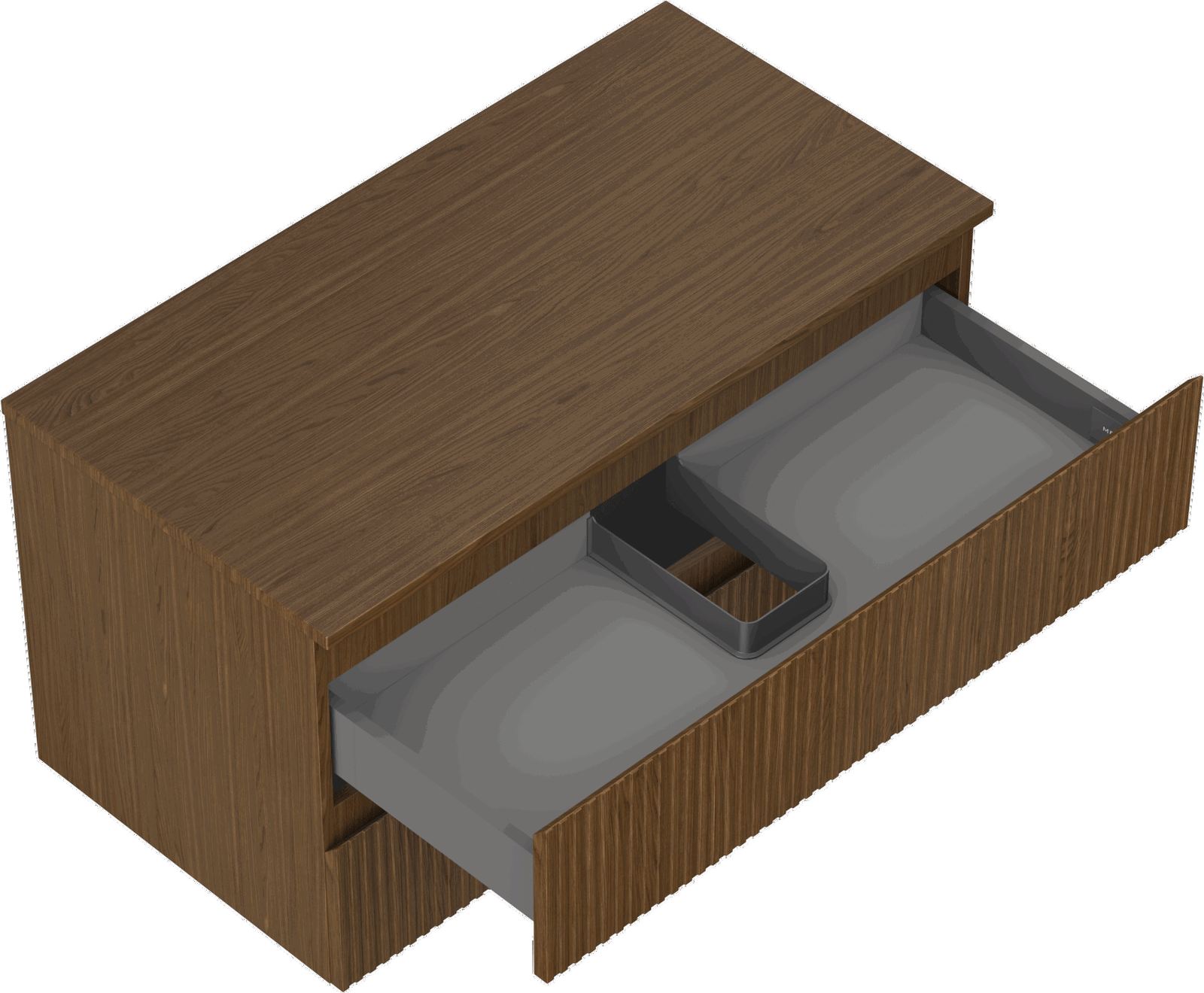 The cutout in the drawer is designed in such a way as to accommodate the siphon, which is essential in sink installations. This allows the furniture to be fully functional without having to give up drawer space for the installation.