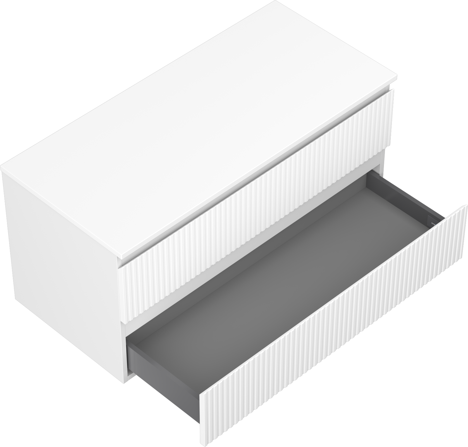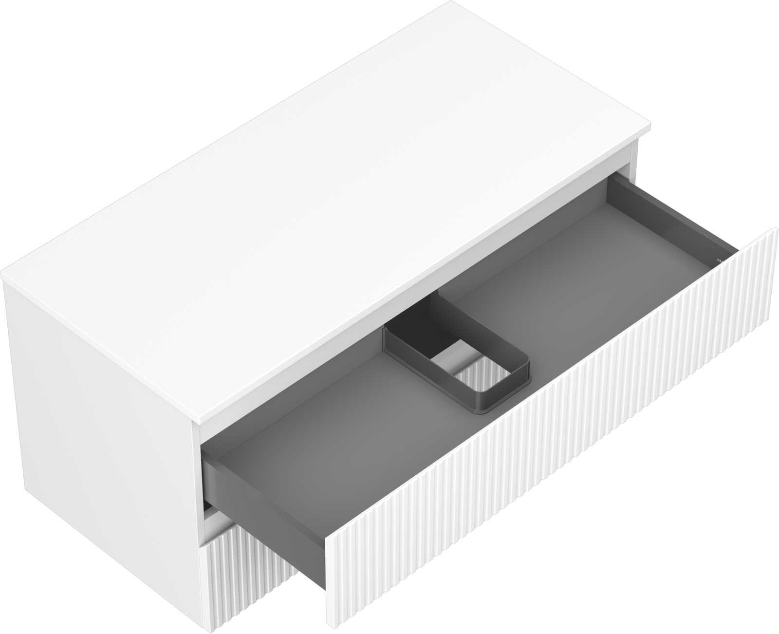 The cutout in the drawer is designed in such a way as to accommodate the siphon, which is essential in sink installations. This allows the furniture to be fully functional without having to give up drawer space for the installation.