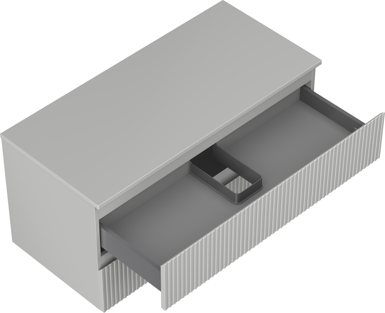 The cutout in the drawer is designed in such a way as to accommodate the siphon, which is essential in sink installations. This allows the furniture to be fully functional without having to give up drawer space for the installation.