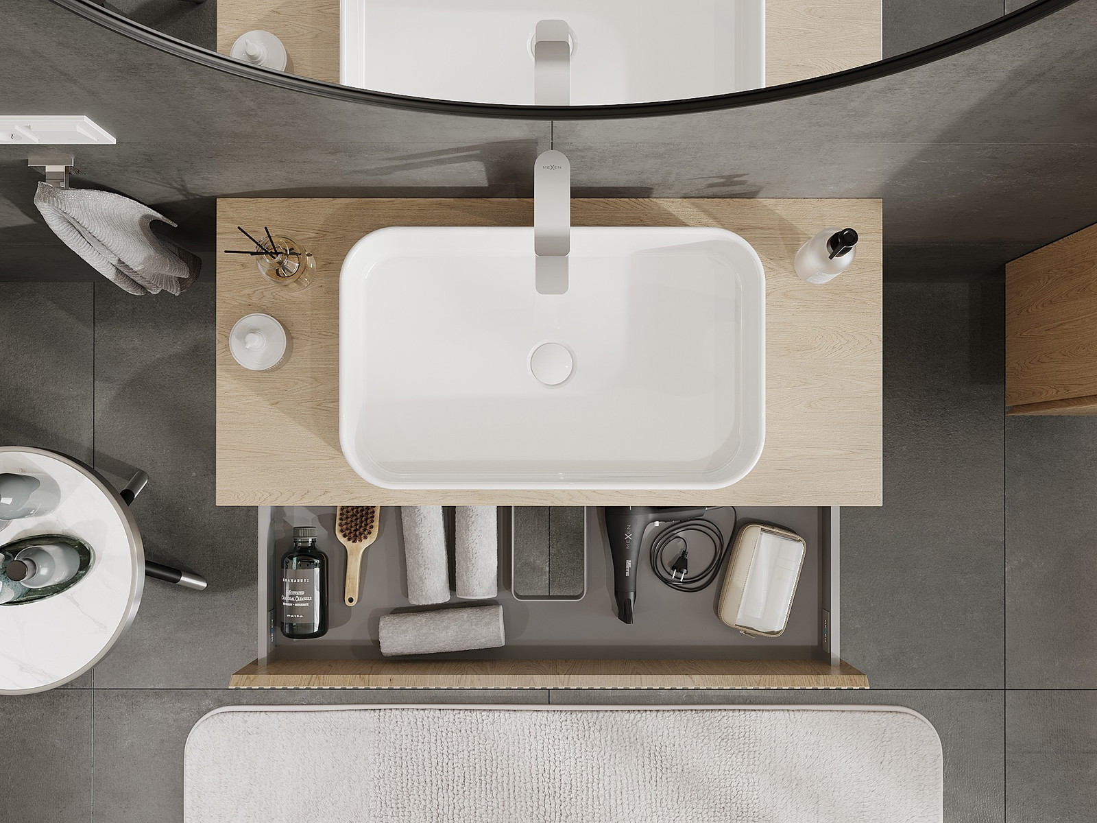Our modular bathroom furniture can be combined in various colour configurations, allowing for complete personalisation. You can choose both the appearance and functions of individual elements, enabling you to adapt the furniture to your own stylistic and functional preferences.