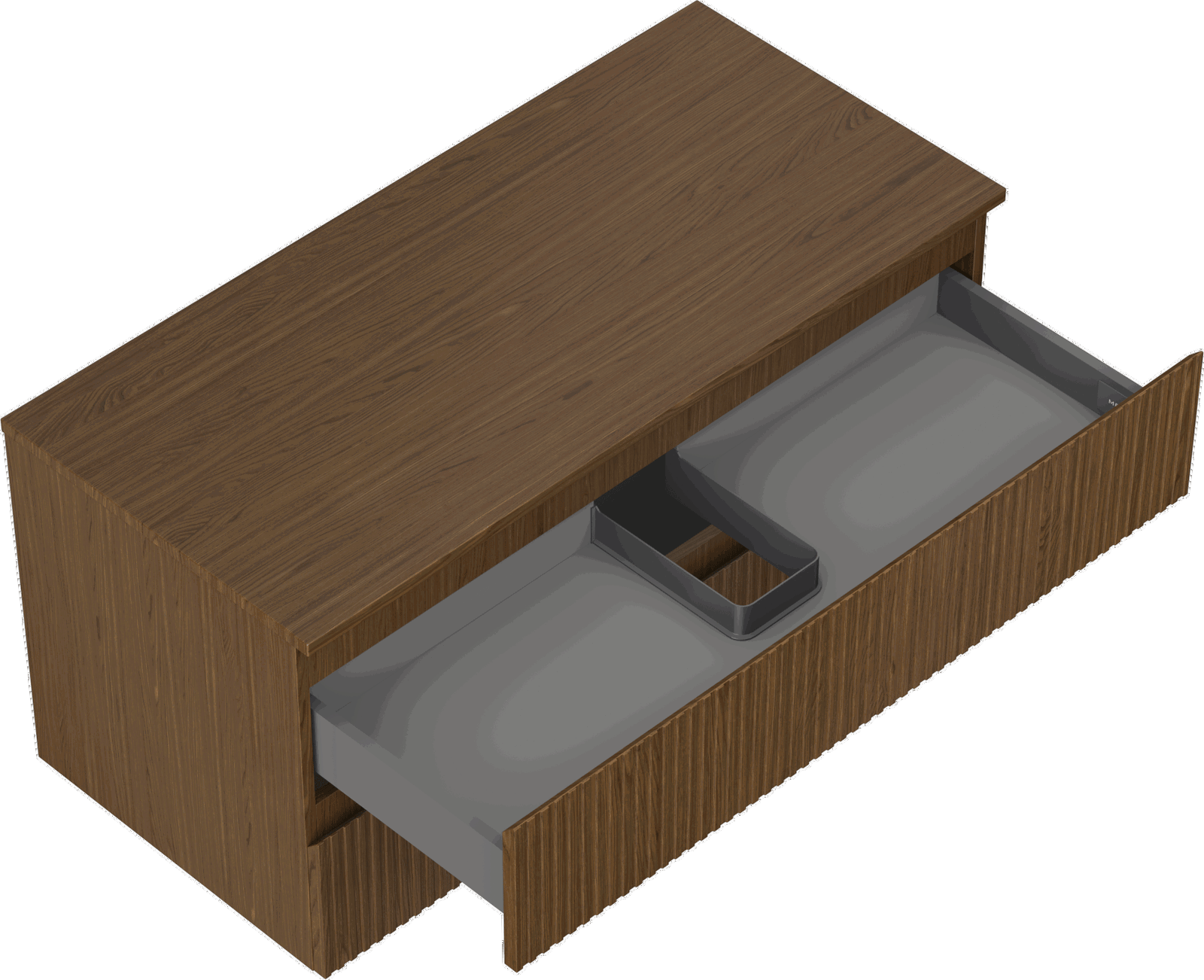 The cutout in the drawer is designed in such a way as to accommodate the siphon, which is essential in sink installations. This allows the furniture to be fully functional without having to give up drawer space for the installation.