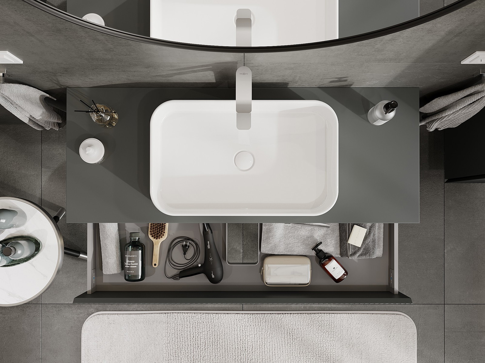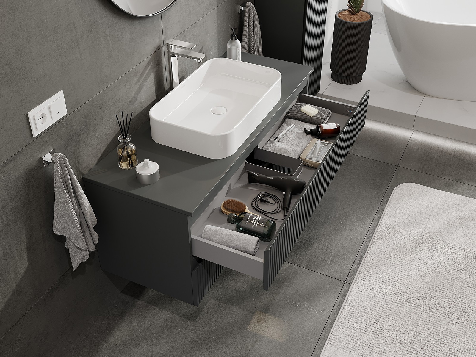 Our modular bathroom furniture can be combined in various colour configurations, allowing for complete personalisation. You can choose both the appearance and functions of individual elements, enabling you to adapt the furniture to your own stylistic and functional preferences.