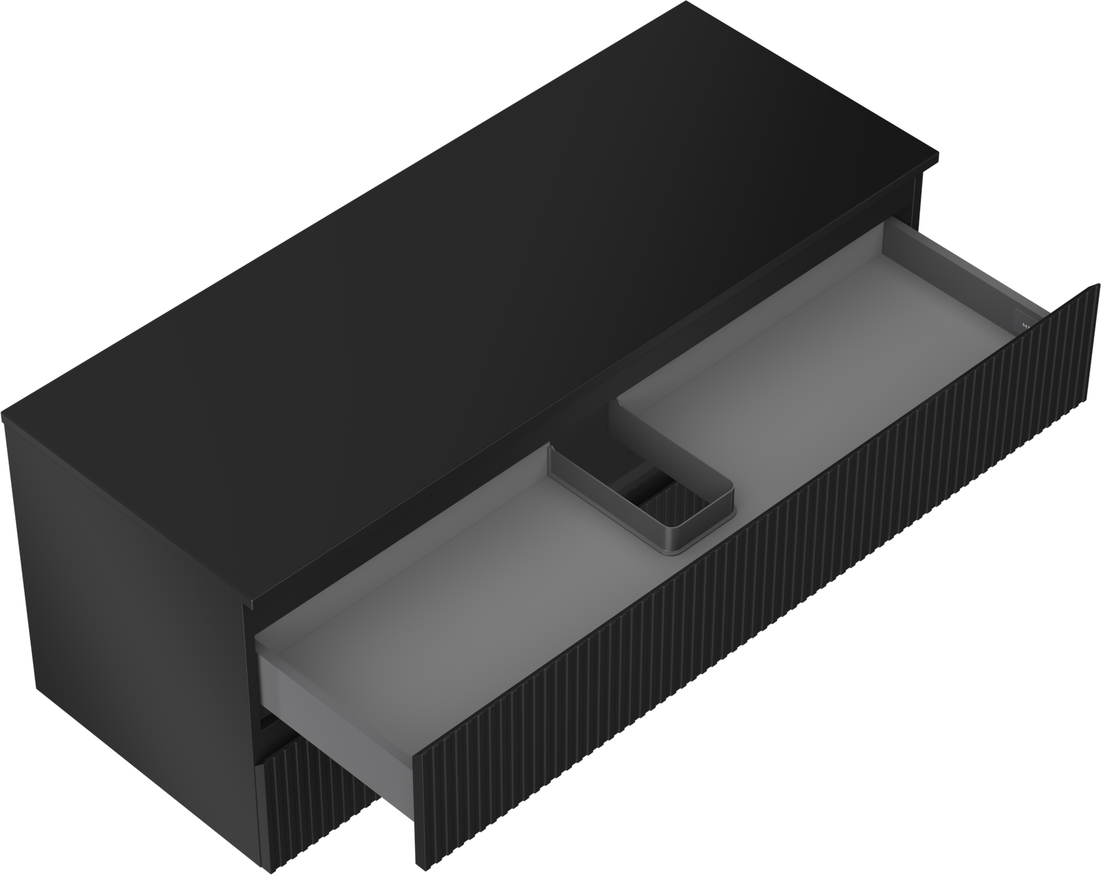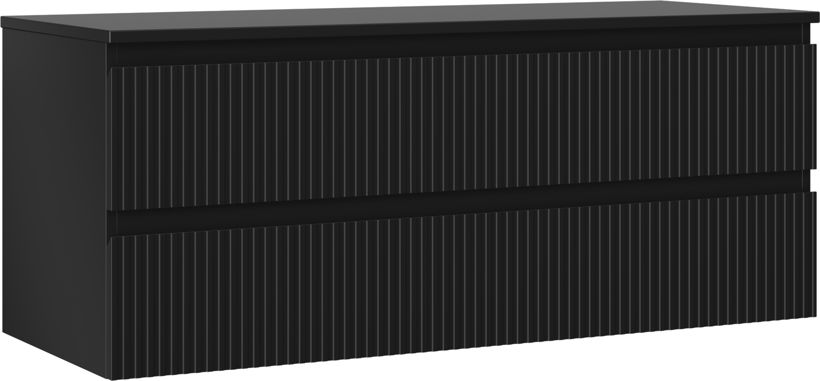 Mexen Rivel bathroom sink cabinet 120 cm with countertop, 2 drawers, fluted, matte black - 91A20-12047-2-BFFC71