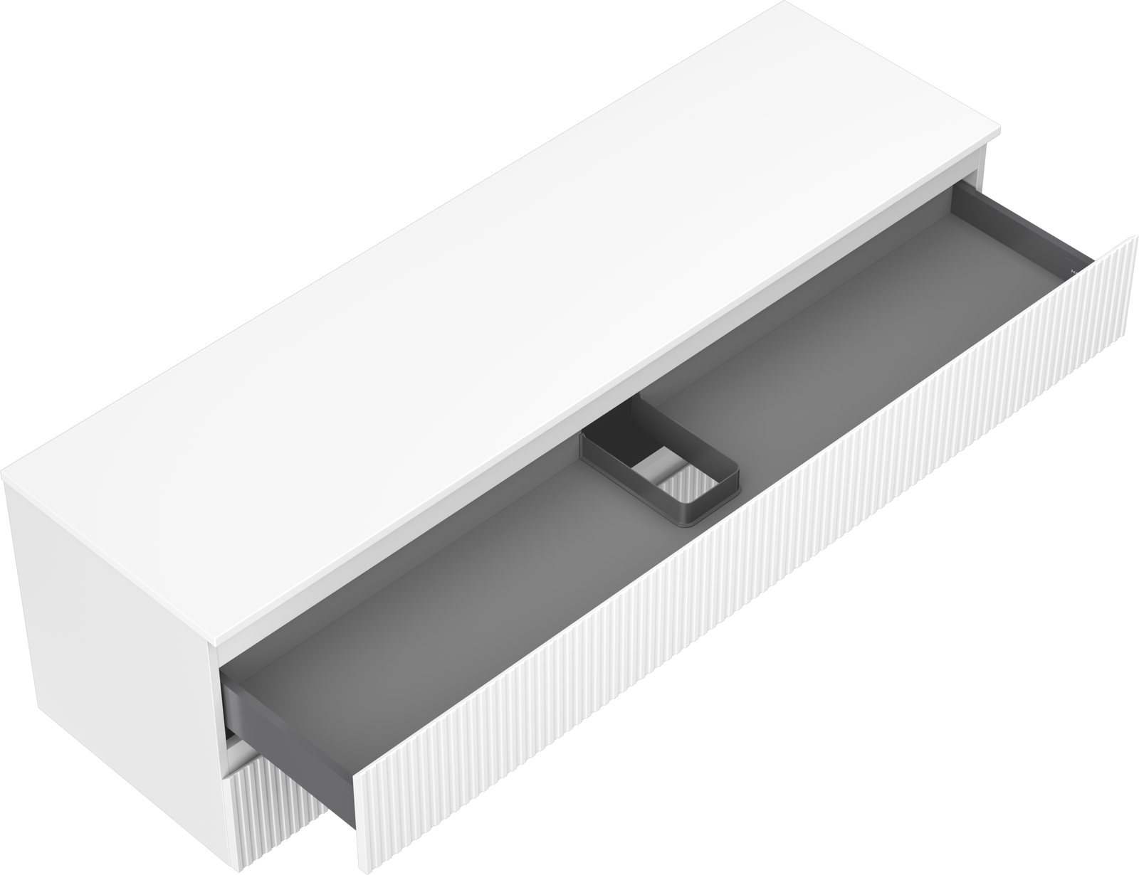 The cutout in the drawer is designed in such a way as to accommodate the siphon, which is essential in sink installations. This allows the furniture to be fully functional without having to give up drawer space for the installation.