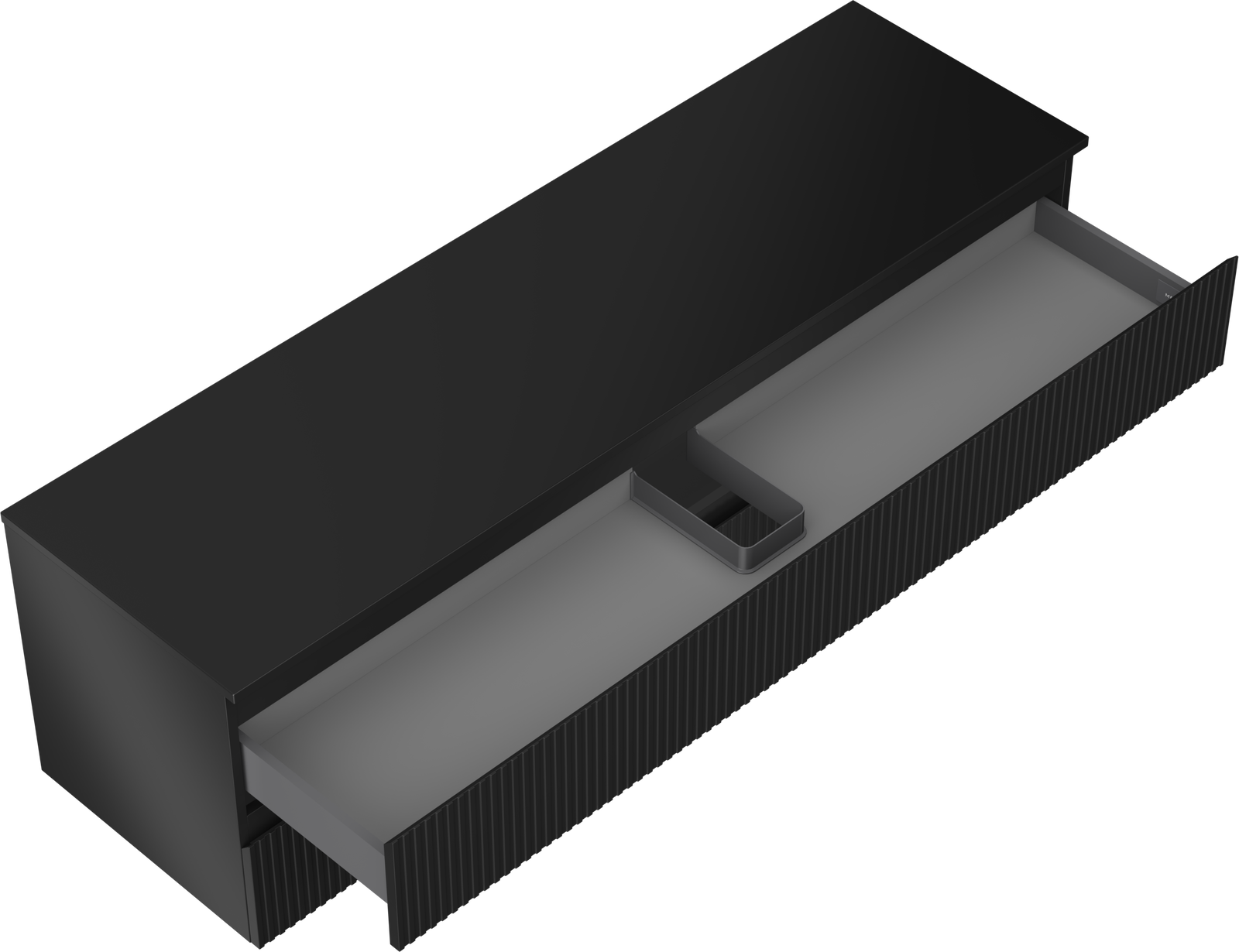 The cutout in the drawer is designed in such a way as to accommodate the siphon, which is essential in sink installations. This allows the furniture to be fully functional without having to give up drawer space for the installation.