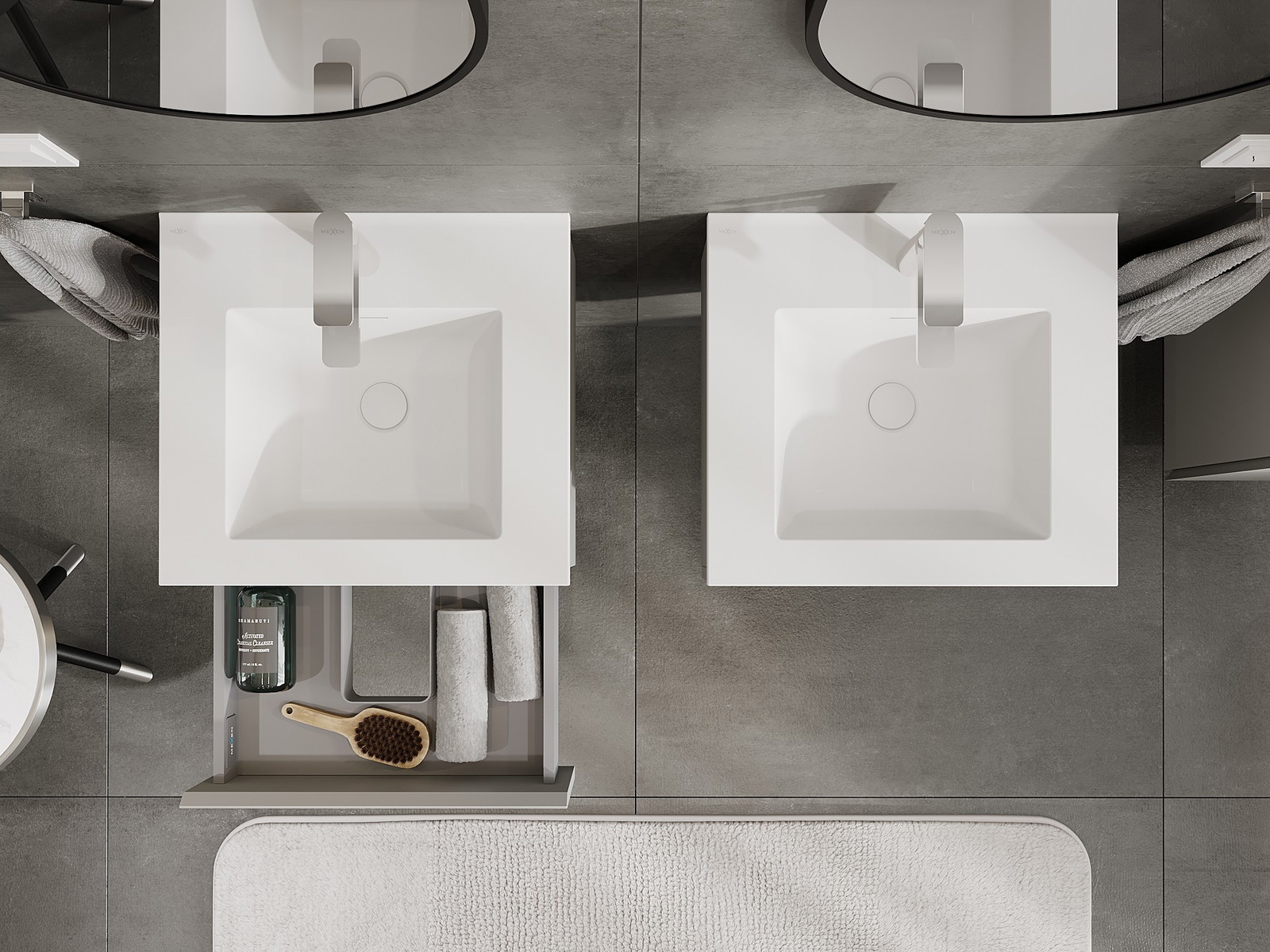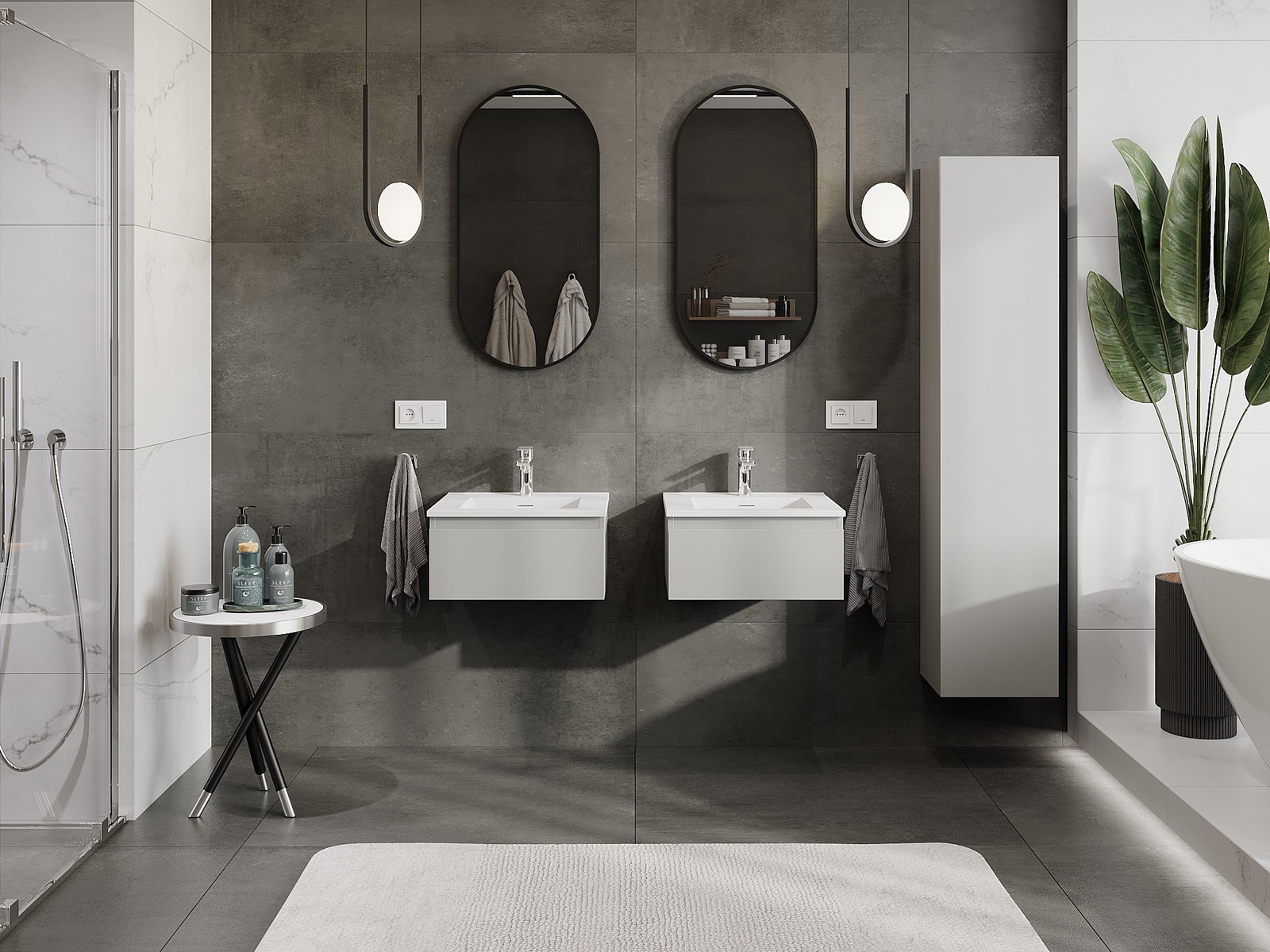 Our modular bathroom furniture can be combined in various colour configurations, allowing for complete personalisation. You can choose both the appearance and functions of individual elements, enabling you to adapt the furniture to your own stylistic and functional preferences.