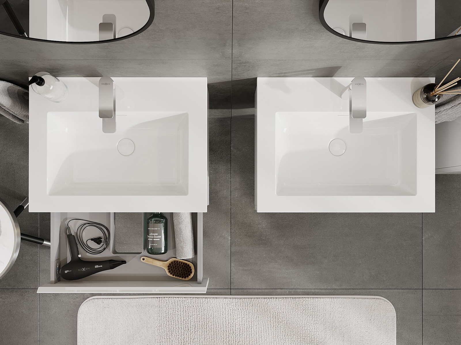 Our modular bathroom furniture can be combined in various colour configurations, allowing for complete personalisation. You can choose both the appearance and functions of individual elements, enabling you to adapt the furniture to your own stylistic and functional preferences.