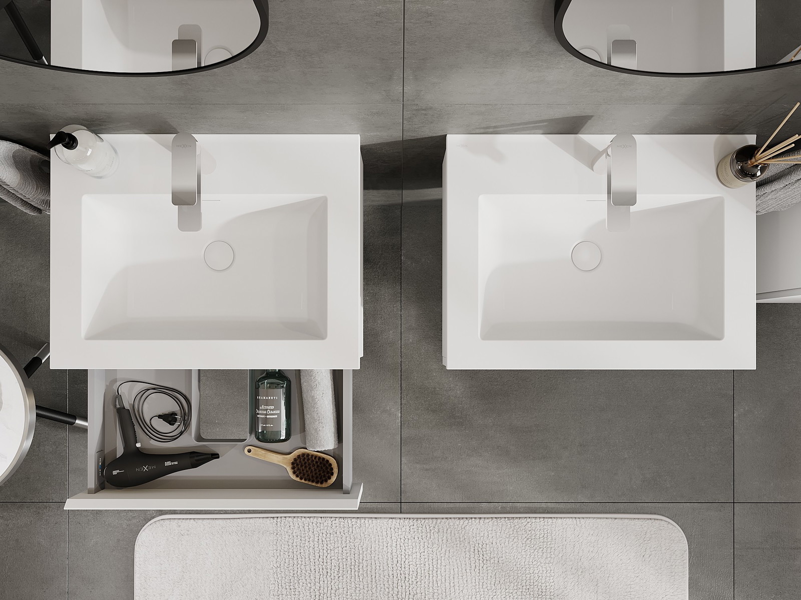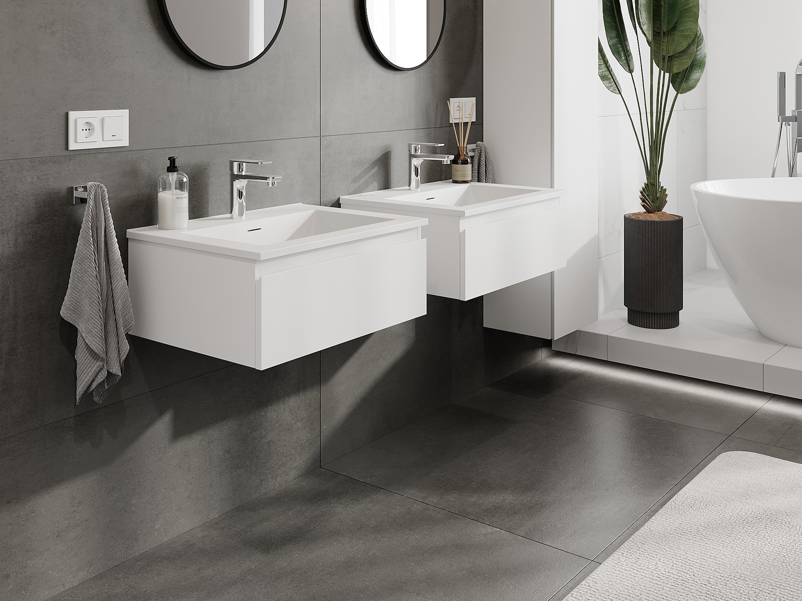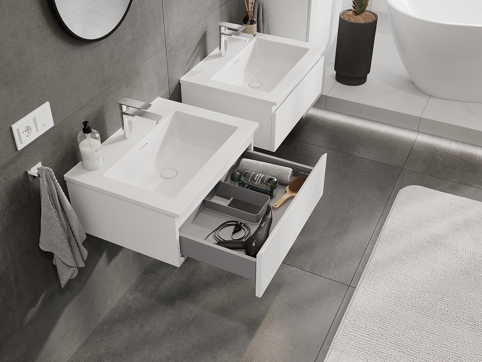 Our modular bathroom furniture can be combined in various colour configurations, allowing for complete personalisation. You can choose both the appearance and functions of individual elements, enabling you to adapt the furniture to your own stylistic and functional preferences.