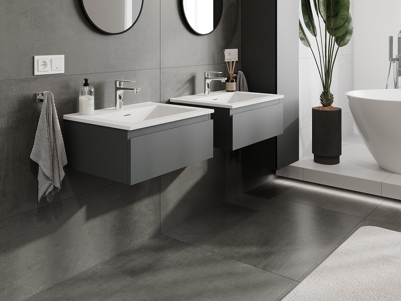 Our modular bathroom furniture can be combined in various colour configurations, allowing for complete personalisation. You can choose both the appearance and functions of individual elements, enabling you to adapt the furniture to your own stylistic and functional preferences.