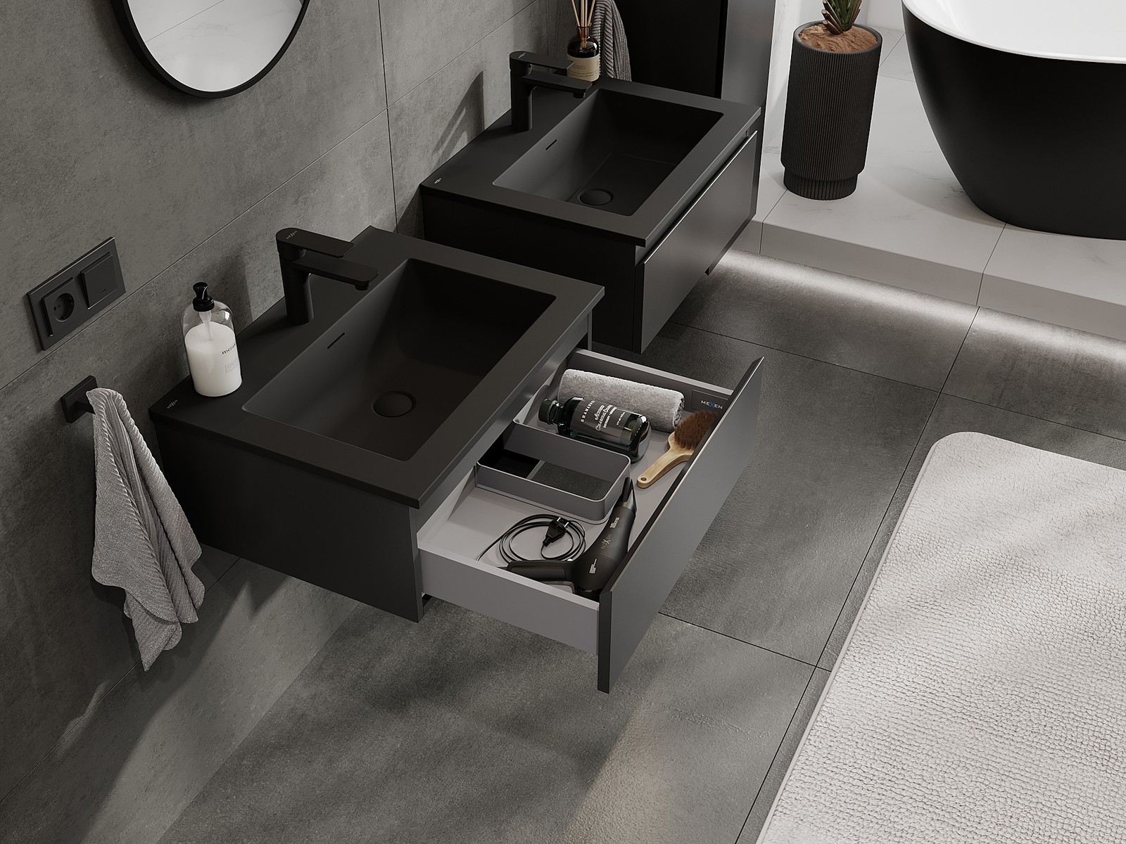 Mexen Orio bathroom cabinet 60 cm with Otis sink, 1 drawer, black matte - 91A10-06023-1-BF71-W18M71