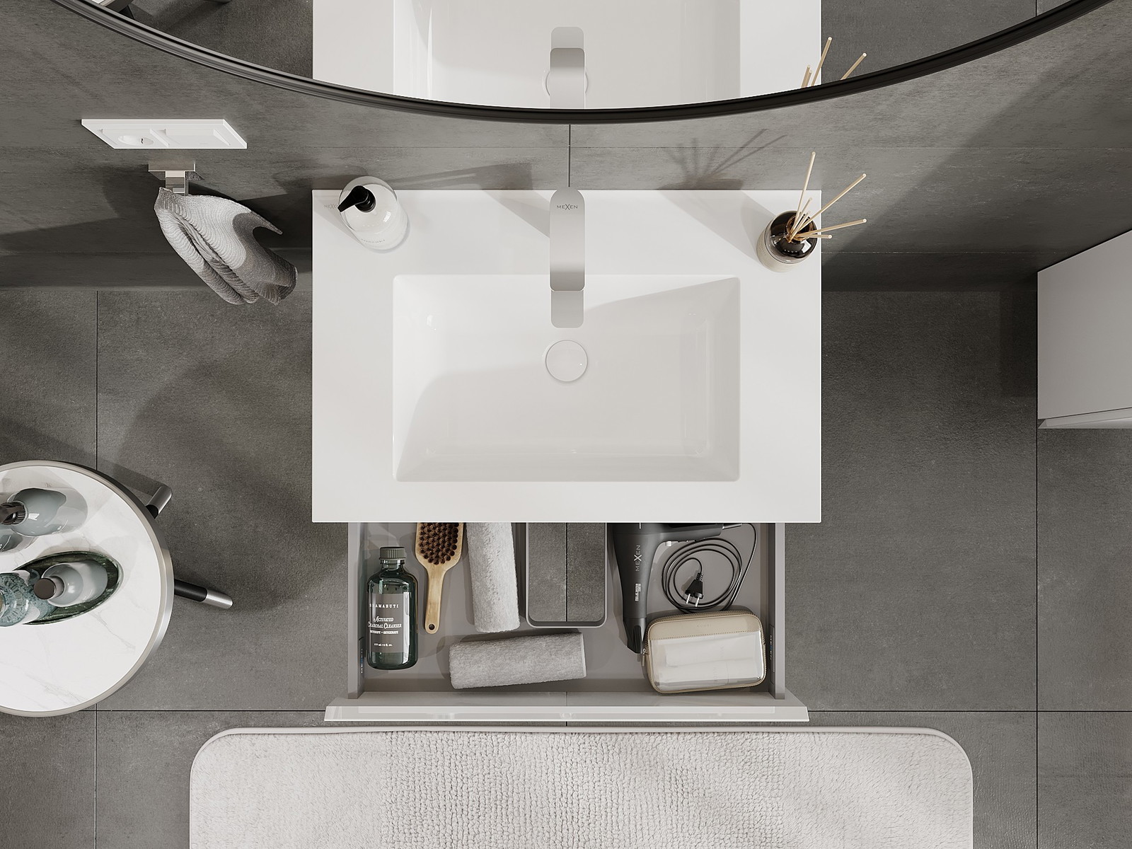 The cabinet carcass is delivered fully assembled, which means maximum convenience and time savings. You don't have to spend hours assembling the furniture – just install it in your chosen spot in the bathroom. This is an ideal solution for those who appreciate quick assembly and immediate results.