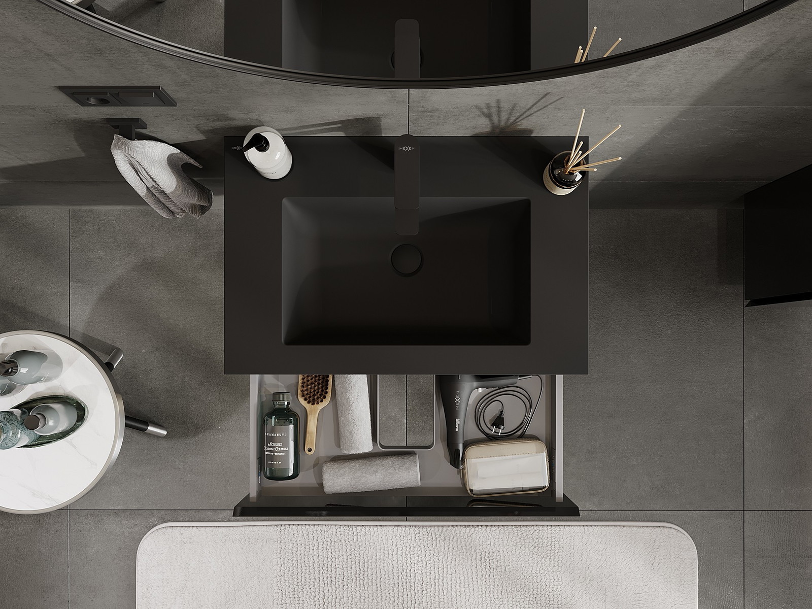 Mexen Orio 70 cm Bathroom Cabinet with Otis Sink, 1 Drawer, Black Gloss/Black Matte - 91A10-07023-1-BF70-W18M71