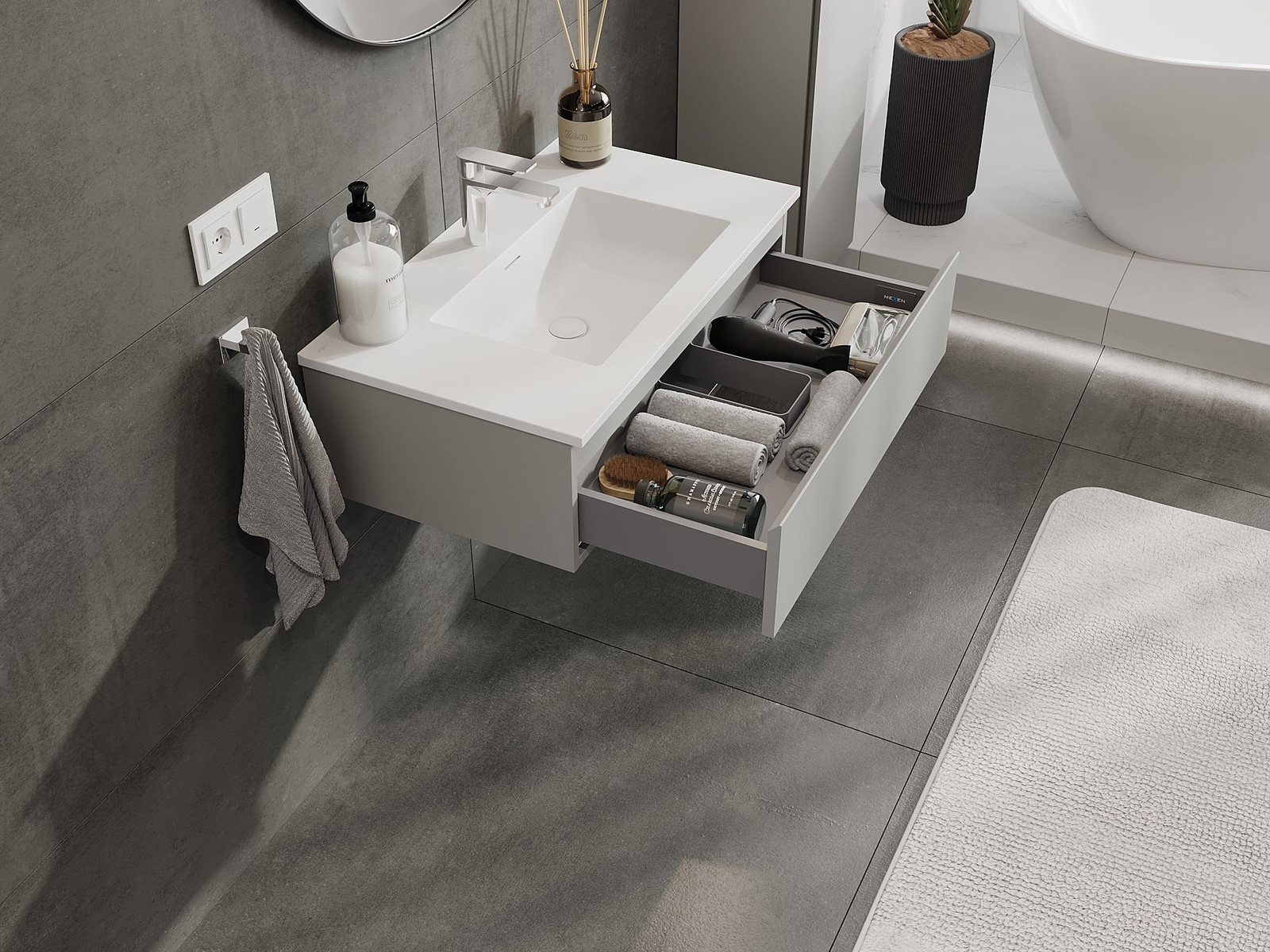 Our modular bathroom furniture can be combined in various colour configurations, allowing for complete personalisation. You can choose both the appearance and functions of individual elements, enabling you to adapt the furniture to your own stylistic and functional preferences.