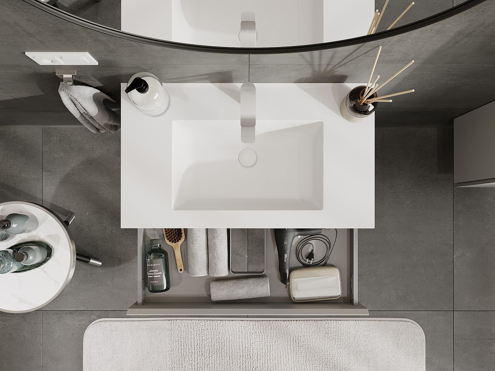 Mexen Orio bathroom cabinet 80 cm with Otis sink, 1 drawer, grey matt/white matt - 91A10-08023-1-BF62-W18M01