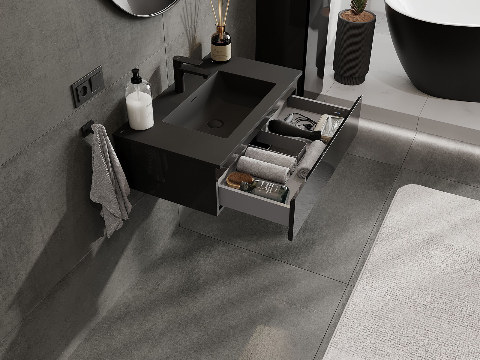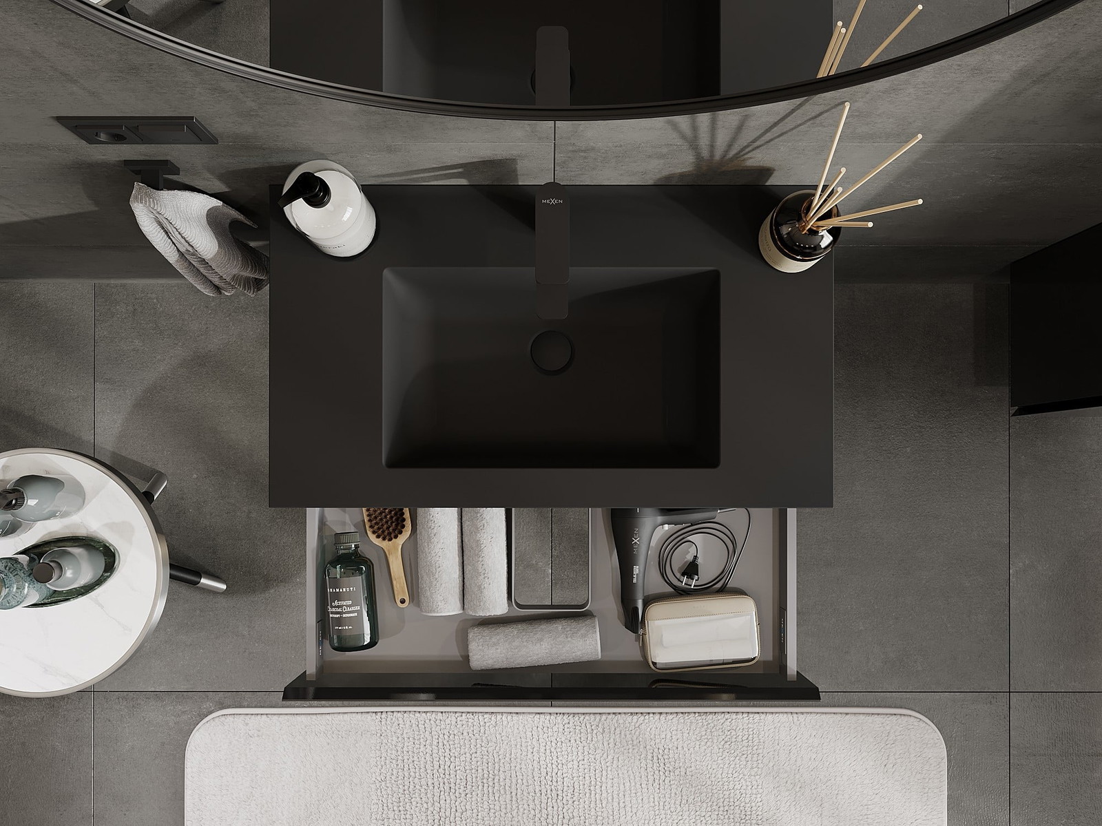 Mexen Orio 80 cm bathroom cabinet with Otis sink, 1 drawer, black gloss/black matte - 91A10-08023-1-BF70-W18M71