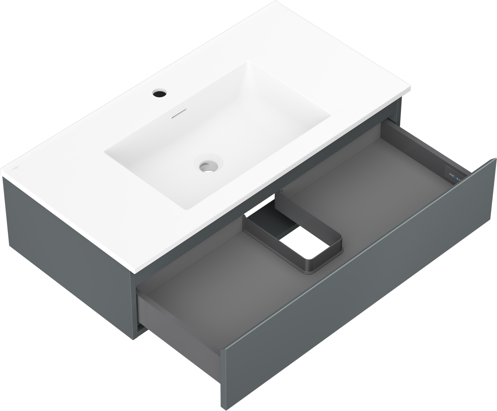 Mexen Orio 90 cm bathroom cabinet with Otis sink, 1 drawer, matte graphite/white matte - 91A10-09023-1-BF66-W18M01