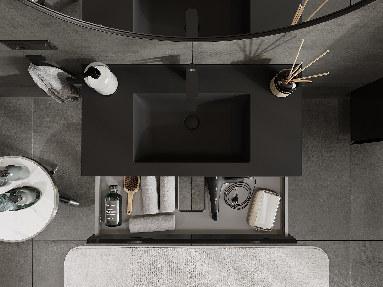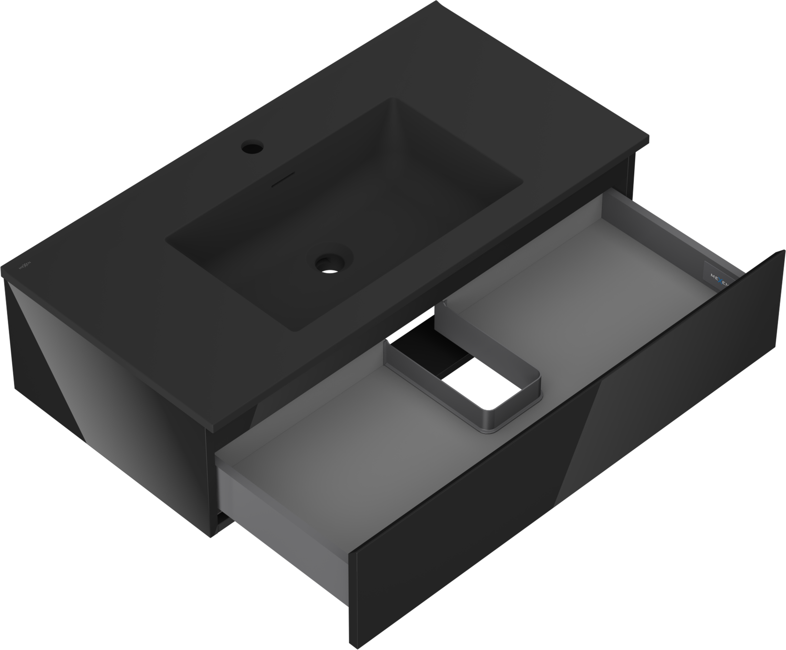 Mexen Orio 90 cm Bathroom Cabinet with Otis Sink, 1 Drawer, Black Gloss/Matte Black - 91A10-09023-1-BF70-W18M71
