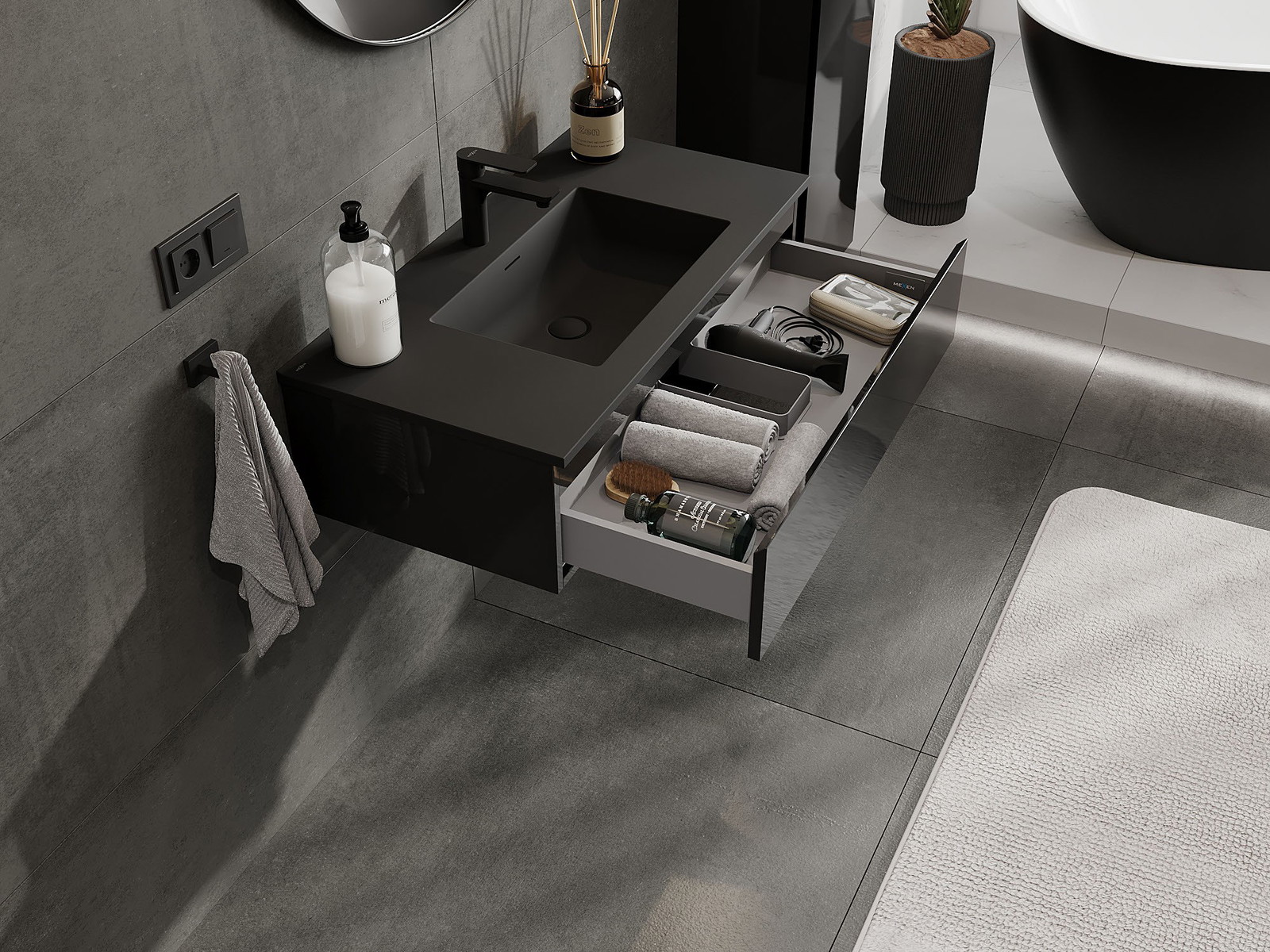 Our modular bathroom furniture can be combined in various colour configurations, allowing for complete personalisation. You can choose both the appearance and functions of individual elements, enabling you to adapt the furniture to your own stylistic and functional preferences.