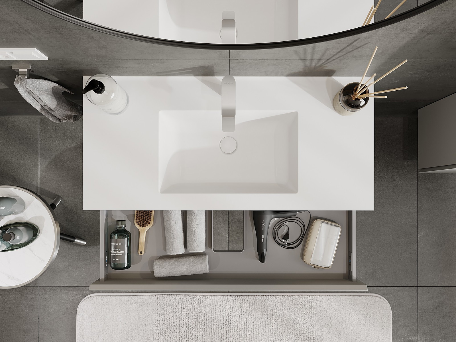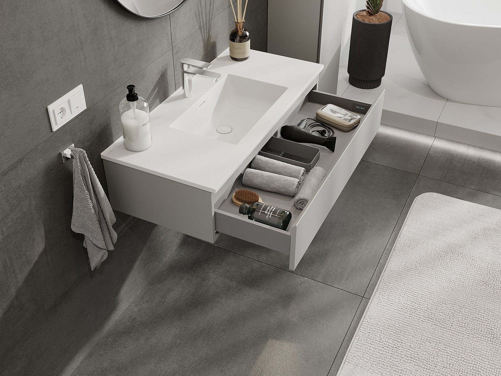 Our modular bathroom furniture can be combined in various colour configurations, allowing for complete personalisation. You can choose both the appearance and functions of individual elements, enabling you to adapt the furniture to your own stylistic and functional preferences.