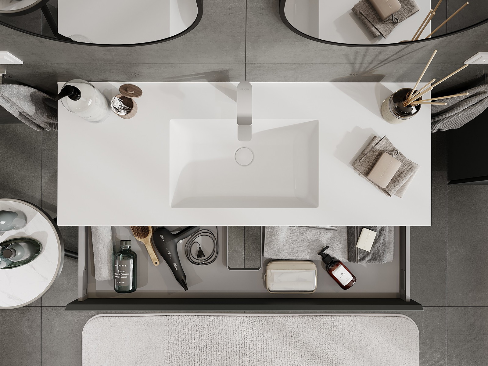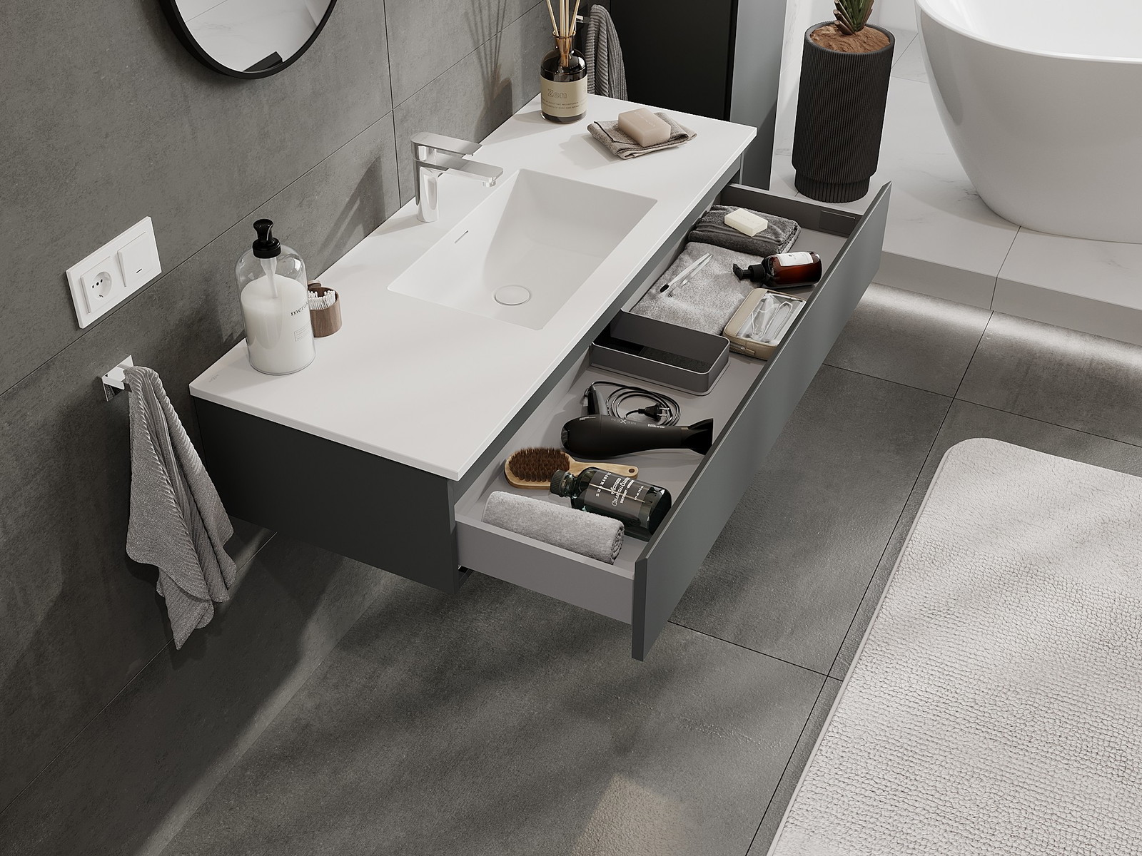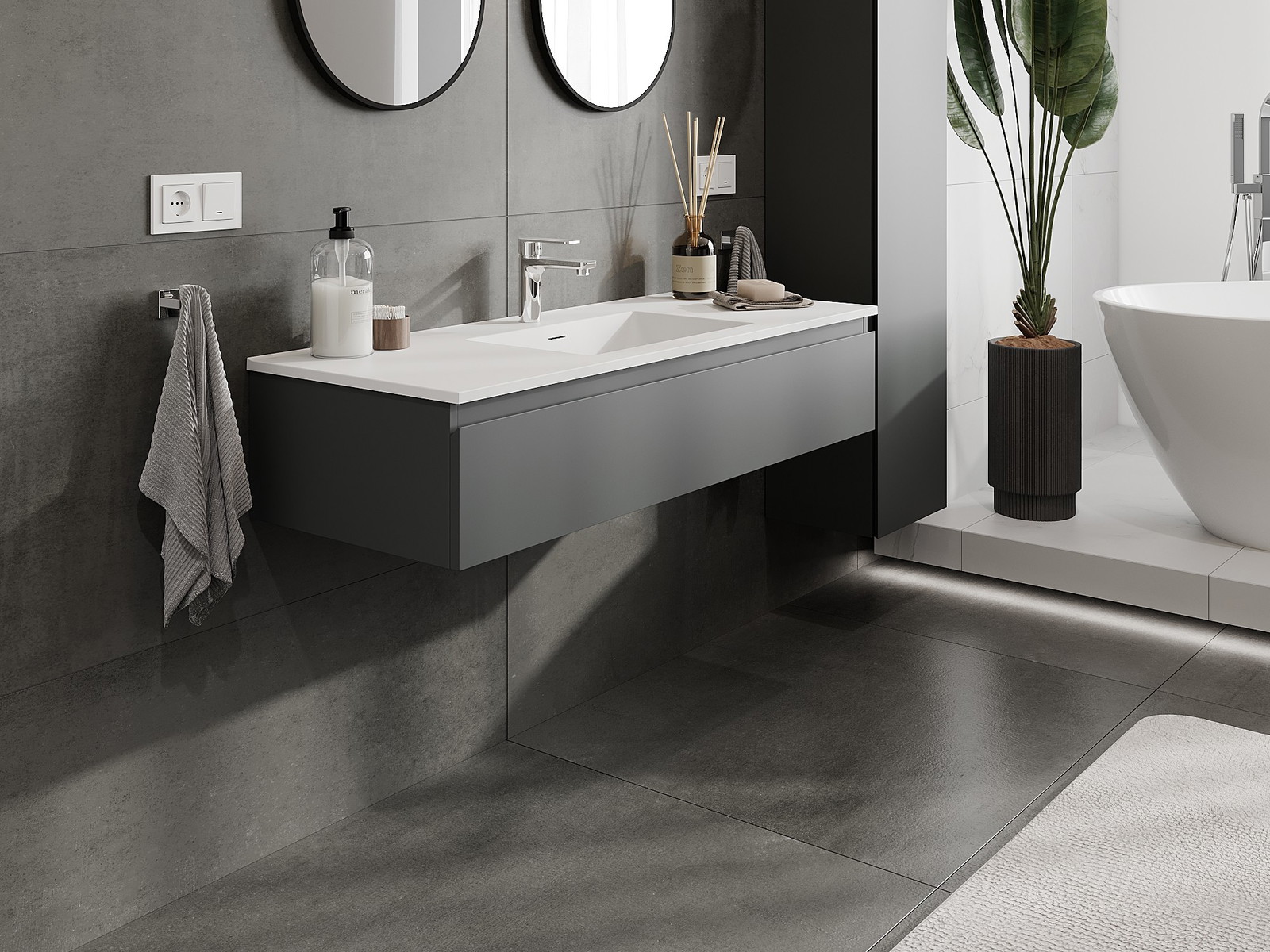Our modular bathroom furniture can be combined in various colour configurations, allowing for complete personalisation. You can choose both the appearance and functions of individual elements, enabling you to adapt the furniture to your own stylistic and functional preferences.